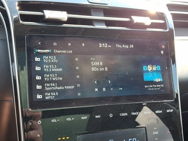 - Radio: Bose Premium w/AM/FM/HD/SiriusXM Audio System -inc: 10.25" color touchscreen w/onboard navigation and traffic flow including incident data via HD radio (HERE) (AVN 5.0), 8 speakers (1 twiddler on center of instrument panel, 2 tweeters, 2 front door, 2 rear door, 1 woofer on rear quarter panel), digital 8 channel amp w/custom equalization, digital signal processing and dynamic speed compensation, Blue Link connected car, Android Auto and Apple CarPlay, USB outlets and Bluetooth® w/voice recognition