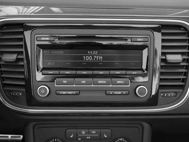 Below is all the standard equipment Titan Black w/V-Tex Leatherette Seating Surfaces, Navigation System, Radio: RNS 315 Touchscreen Navigation System, 4-Wheel Disc Brakes, ABS brakes, Air Conditioning, Alloy wheels, AM/FM radio: SiriusXM, Bodyside moldings, Brake assist, Bumpers: body-color, CD player, Convertible roof lining, Driver door bin, Driver vanity mirror, Dual front impact airbags, Dual front side impact airbags, Electronic Stability Control, Emergency communication system: VW Car-Net, Four wheel independent suspension, Front anti-roll bar, Front Bucket Seats, Front Center Armrest w/Storage, Front fog lights, Front reading lights, Glass rear window, Heatable Front Comfort Seats, Heated door mirrors, Heated front seats, Illuminated entry, Integrated roll-over protection, Leather Shift Knob, Leather steering wheel, Low tire pressure warning, Occupant sensing airbag, Outside temperature display, Overhead console, Panic alarm, Passenger door bin, Passenger vanity mirror, Power convertible roof, Power door mirrors, Power steering, Power windows, Radio data system, Rear anti-roll bar, Rear reading lights, Rear window defroster, Remote keyless entry, Speed control, Speed-sensing steering, Split folding rear seat, Spoiler, Steering wheel mounted audio controls, Tachometer, Telescoping steering wheel, Tilt steering wheel, Traction control, Trip computer, Turn signal indicator mirrors, V-Tex Leatherette Seating Surfaces, Variably intermittent wipers, and Wheels: 17 Rotor Alloy.