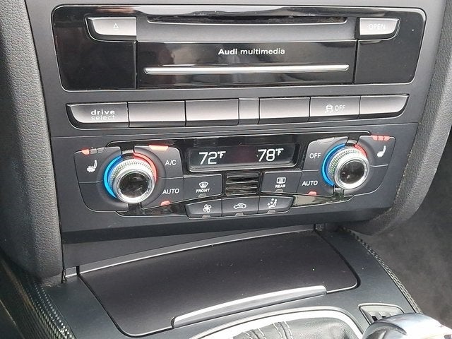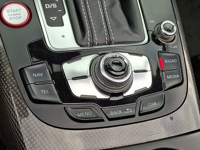Below is all the standard equipment Technology Package (Audi Side Assist, MMI Navigation Plus System, Parking System w/Rearview Camera, and Radio: 1 CD/DVD-Player & HD), 14 Speakers, 4-Wheel Disc Brakes, 8.5J x 18 5-Parallel-Spoke S-Design Wheels, ABS brakes, Air Conditioning, Alloy wheels, AM/FM radio: SiriusXM, Auto-dimming door mirrors, Auto-dimming Rear-View mirror, Automatic temperature control, Brake assist, Bumpers: body-color, CD player, Compass, Convertible roof lining, Convertible roof wind blocker, Delay-off headlights, Driver door bin, Driver vanity mirror, Dual front impact airbags, Dual front side impact airbags, Electronic Stability Control, Fine Nappa Leather Seat Trim, Four wheel independent suspension, Front anti-roll bar, Front Bucket Seats, Front Center Armrest, Front dual zone A/C, Front fog lights, Front reading lights, Garage door transmitter: HomeLink, Glass rear window, Heated door mirrors, Heated Front S Sport-Contoured Seats, Heated front seats, High intensity discharge headlights: Xenon plus, Illuminated entry, Integrated roll-over protection, Knee airbag, Leather Shift Knob, Leather steering wheel, Low tire pressure warning, Memory seat, Occupant sensing airbag, Outside temperature display, Panic alarm, Passenger door bin, Passenger vanity mirror, Power convertible roof, Power door mirrors, Power driver seat, Power passenger seat, Power steering, Power windows, Radio data system, Radio: Audi Concert System w/1CD Player, Rain sensing wipers, Rear air conditioning, Rear anti-roll bar, Rear fog lights, Rear reading lights, Rear window defroster, Remote keyless entry, Security system, Speed control, Speed-Sensitive Wipers, Split folding rear seat, Sport steering wheel, Steering wheel mounted audio controls, Tachometer, Telescoping steering wheel, Tilt steering wheel, Traction control, Trip computer, Turn signal indicator mirrors, and Variably intermittent wipers.