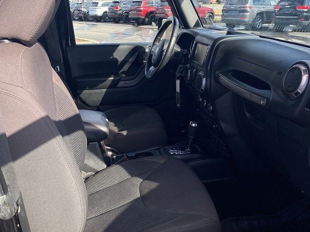Below is all the standard equipment Big Bear Package, Connectivity Group (Remote USB Port, Tire Pressure Monitoring Display, Uconnect Voice Command w/Bluetooth®, and Vehicle Information Center), LED Lighting Group (LED Fog Lamps and LED Reflector Headlamps), Power Convenience Group (Auto-Dimming Mirror w/Reading Lamp, Front 1-Touch Down Power Windows, Power Heated Mirrors, Power Locks, Remote Keyless Entry, and Security Alarm), Quick Order Package 24Q Big Bear (DISC) (1-Yr SiriusXM Radio Service, 115V Auxiliary Power Outlet, Air Conditioning, BF Goodrich Brand Tires, Black/Chrome Screws Fuel Filler Door, Cloth Sport Mesh Sedoso Seats (DISC), Deep Tint Sunscreen Windows, Driver Height Adjuster Seat, Granite Crystal Jeep Badge, Heavy Duty Suspension w/Gas Shocks (DISC), Iron Gray Interior Accents, Jeep Trail Rated Kit, Low Gloss Black Grille, Low Gloss Black Wrangler Decal, Mid Gloss Granite Crystal Appliques, MOPAR Black Tail Lamp Guards, MOPAR Coat Hooks & Grab Handles, MOPAR Slush Mats, Premium Black Sunrider Soft Top, R1234YF A/C Refrigerant, SIRIUS Satellite Radio, Topographical Hood Decal, Wheels: 17 x 7.5 Blk Semi-Gloss Aluminum (DISC), and Wrangler Hood Decal Low Gloss Black), Black 3-Piece Hard Top, Delete Sunrider Soft Top, Freedom Panel Storage Bag, GPS Navigation, Rear Window Defroster, Rear Window Wiper/Washer, 16 x 7.0 Luxury Styled Steel Wheels, 3.21 Rear Axle Ratio, 4-Wheel Disc Brakes, 40GB Hard Drive w/28GB Available, 5-Year SiriusXM Travel Link Service, 6.5 Touchscreen Display, 8 Speakers, ABS brakes, Alpine 9-Speaker w/All Weather Subwoofer, AM/FM radio, Audio Jack Input for Mobile Devices, Brake assist, CD player, Cloth Seats w/Adjustable Head Restraints, Compass, Driver door bin, Driver vanity mirror, Dual front impact airbags, Electronic Stability Control, Front anti-roll bar, Front Bucket Seats, Front Center Armrest w/Storage, Front fog lights, Integrated roll-over protection, Low tire pressure warning, Normal Duty Suspension, Occupant sensing airbag, Outside temperature display, Passenger door bin, Passenger vanity mirror, Power steering, Radio: 130, Radio: 430 Nav (DISC), Rear anti-roll bar, SIRIUSXM Travel Link, Speed control, Steering wheel mounted audio controls, Tachometer, Tilt steering wheel, Traction control, Trip computer, and Variably intermittent wipers. Awards: