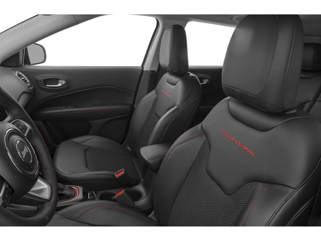 2019 Jeep Compass Trailhawk in White Clearcoat with Ruby Red/Black Cloth.