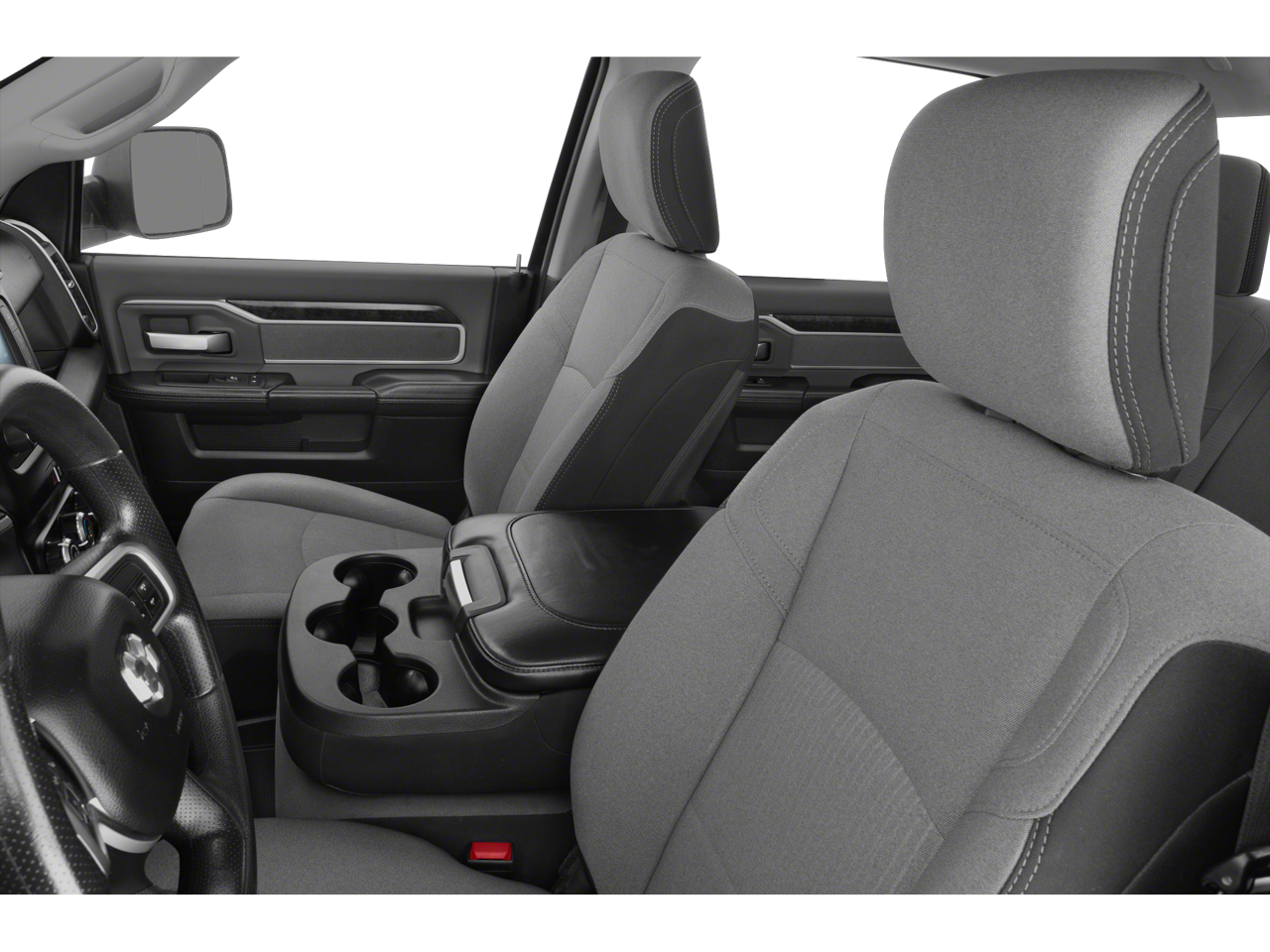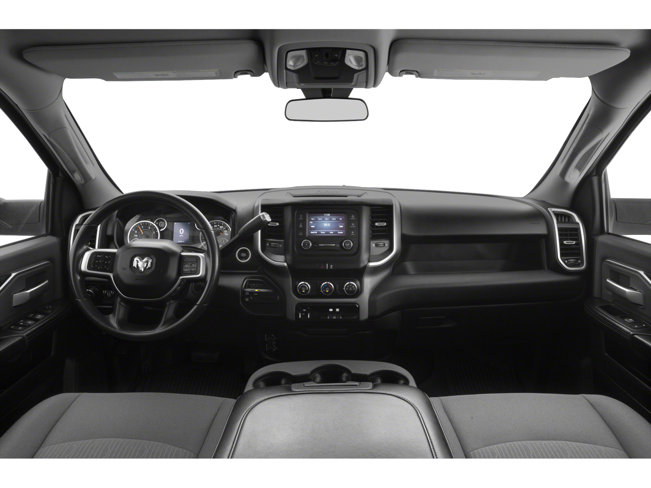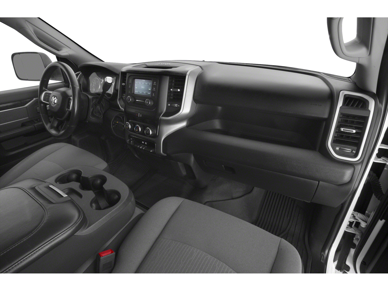 Below is all the standard equipment Bed Utility Group (Deployable Bed Step, LED Bed Lighting, and Spray In Bedliner), Big Horn Level 1 Equipment Group (2 Way Rear Headrest Seat, 2nd Row In Floor Storage Bins, 4 Way Front Headrests, 40/20/40 Split Bench Seat, 8.4 Touchscreen Display, Apple CarPlay, Auto-Dimming Rear-View Mirror, Center Hub, Center Stack Storage Drawer, Dual Glove Boxes, Foam Bottle Insert (Door Trim Panel), Folding Flat Load Floor Storage, Footwell Courtesy Lamp, For More Info, Call 800-643-2112, Front Armrest w/Cupholders, Front Center Seat Cushion Storage, Front Fog Lamps, Front Seat Back Map Pockets, Glove Box Lamp, Google Android Auto, Integrated Center Stack Radio, Leather Wrapped Steering Wheel, Locking Lower Glove Box, Manual Adjust 4-Way Front Passenger Seat, Power 2-Way Driver Lumbar Adjust, Power Adjust 8-Way Driver Seat, Power Adjust/Fold & Heated Black Tow Mirrors, Power Adjustable Pedals, Power Folding Mirrors, Premium Cloth 40/20/40 Bench Seat, Radio: Uconnect 4 w/8.4 Display, Rear 60/40 Folding Seat, Rear Dome w/On/Off Switch Lamp, Selectable Tire Fill Alert, SiriusXM Satellite Radio, Steering Wheel Mounted Audio Controls, Sun Visors w/Illuminated Vanity Mirrors, Universal Garage Door Opener, and Wheels: 18 x 8.0 Polished Aluminum), Cold Weather Group (Engine Block Heater and Winter Front Grille Cover), Heavy Duty Snow Plow Prep Group (220 Amp Alternator), Quick Order Package 2HZ Big Horn, 3.73 Axle Ratio, 4-Wheel Disc Brakes, 6 Speakers, ABS brakes, Active Noise Control System, Air Conditioning, AM/FM radio, Brake assist, Bumpers: chrome, Cloth 40/20/40 Bench Seat, Compass, Delay-off headlights, Driver door bin, Dual front impact airbags, Dual front side impact airbags, Electronic Stability Control, Electronically Controlled Throttle, Front anti-roll bar, Front Center Armrest w/Storage, Front reading lights, Fully automatic headlights, Heated door mirrors, Illuminated entry, Low tire pressure warning, Manual Adjust 4-Way Driver Seat, Manufacturer's Statement of Origin, Occupant sensing airbag, Outside temperature display, Overhead airbag, Overhead console, Panic alarm, ParkView Rear Back-Up Camera, Passenger door bin, Passenger vanity mirror, Power door mirrors, Power steering, Power windows, Radio data system, Radio: Uconnect 3 w/5 Display, Rear anti-roll bar, Rear Folding Seat, Rear seat center armrest, Rear step bumper, Remote keyless entry, Remote Start System, Speed control, Tachometer, Tilt steering wheel, Tip Start, Traction control, Trip computer, Turn signal indicator mirrors, Variably intermittent wipers, Vendor Painted Cargo Box Tracking, and Voltmeter.