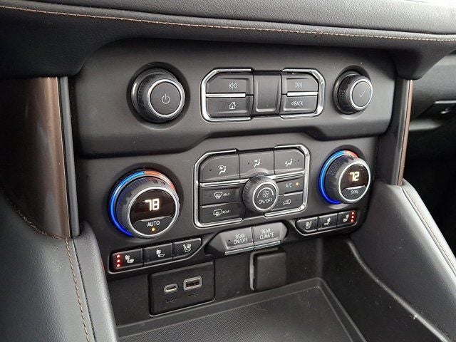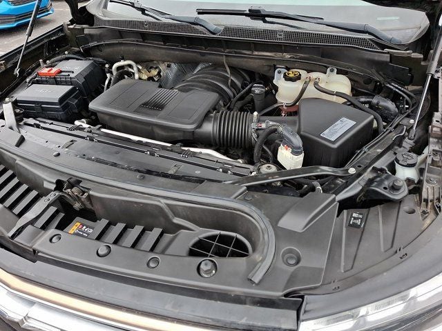 Below is all the standard equipment Advanced Trailering Package (Advanced Trailering System, Hitch Guidance w/Hitch View, Integrated Trailer Brake Controller, and Trailer Side Blind Zone Alert), Max Trailering Package (Extra Capacity Cooling System), Preferred Equipment Group 3LZ (15 Diagonal Multi-Color Head-Up Display, 1st & 2nd Row Color-Keyed Carpeted Floor Mats, 2 USB Data Ports, 2-Speed Active Electronic AutoTrac Transfer Case, 3rd Row 60/40 Power-Folding Split-Bench Seat, Automatic Heated Steering Wheel, Bright Front & Rear Door Sill Plates, Chrome Door Handles w/Body-Color Strip, Color-Keyed Carpeting Floor Covering, Driver & Front Outboard Passenger Airbags, Dual Exhaust System, Enhanced Driver Information Center, Floor Console w/Storage Area, Front & Rear Park Assist, Hands-Free Rear Power Programmable Liftgate, HD Radio, HD Surround Vision, Heated 2nd Row Outboard Seats, Hill Descent Control, Infotainment Display, Inside Rearview Auto-Dimming Rear Camera Mirror, Lane Change Alert w/Side Blind Zone Alert, Lane Keep Assist w/Lane Departure Warning, Leather-Wrapped Steering Wheel, LED Daytime Running Lamps, Memory Settings, Outside Heated Power-Adjustable Mirrors, Power Release 2nd Row Bucket Seats, Power Tilt & Telescopic Steering Column, Rear Camera Mirror Washer, Rear Cross Traffic Alert, Rear Pedestrian Alert, Remote Start, Safety Alert Seat, SiriusXM NavTraffic, SiriusXM Radio w/360L, and Universal Home Remote), Premium Package (Adaptive Cruise Control, Dual-Pane Power Panoramic Sunroof, Enhanced Automatic Emergency Braking, and Power-Retractable Assist Steps), 4WD, Jet Black Leather, Navigation System, Set of 4 Wheel Locks (LPO), Wheels: 22 x 9 Sterling Silver Premium Painted, 10 Speakers, 12-Way Power Driver & Passenger Seat Adjusters, 1st, 2nd & 3rd Rows All-Weather Floor Liners (LPO), 3.23 Rear Axle Ratio, 3rd row seats: split-bench, 4-Wheel Disc Brakes, ABS brakes, Adaptive suspension, Air Conditioning, Alloy wheels, AM/FM radio: SiriusXM with 360L, Apple CarPlay/Android Auto, Auto High-beam Headlights, Auto-dimming door mirrors, Auto-dimming Rear-View mirror, Auto-leveling suspension, Automatic temperature control, Bose 10-Speaker Centerpoint Surround Audio Sys Ft, Brake assist, Bumpers: body-color, Compass, Delay-off headlights, Driver door bin, Driver vanity mirror, Dual front impact airbags, Dual front side impact airbags, Electronic Stability Control, Emergency communication system: OnStar and Chevrolet connected services capable, Four wheel independent suspension, Front & Rear Black Bowtie Emblems (LPO), Front anti-roll bar, Front Bucket Seats, Front Center Armrest, Front dual zone A/C, Front High-Back Reclining Bucket Seats, Front reading lights, Fully automatic headlights, Garage door transmitter, Heads-Up Display, Heated & Ventilated Driver & Front Passenger Seats, Heated door mirrors, Heated Driver & Front Passenger Seats, Heated f