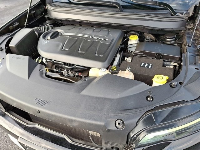 Below is all the standard equipment Quick Order Package 26G, FCA US LLC Certified Pre-Owned Certified, 10 Speakers, 3.251 Axle Ratio, 4-Wheel Disc Brakes, ABS brakes, Air Conditioning, Alloy wheels, AM/FM radio: SiriusXM, Anti-whiplash front head restraints, Apple CarPlay/Android Auto, Audio memory, Auto High-beam Headlights, Auto-dimming Rear-View mirror, Automatic temperature control, AutoStick Automatic Transmission, Auxiliary Transmission Oil Cooler, Brake assist, Bumpers: body-color, Compass, Delay-off headlights, Driver door bin, Driver vanity mirror, Dual Bright Exhaust Tips, Dual front impact airbags, Dual front side impact airbags, Electronic Stability Control, Engine Oil Cooler, Four wheel independent suspension, Front anti-roll bar, Front Bucket Seats, Front Center Armrest, Front dual zone A/C, Front fog lights, Front License Plate Bracket, Front reading lights, Fully automatic headlights, Garage door transmitter, Heated door mirrors, Heated front seats, Heated steering wheel, Illuminated entry, Knee airbag, Leather Shift Knob, Liquid Titanium Door Trim Appliques, Low tire pressure warning, Memory seat, Normal Duty Suspension, Occupant sensing airbag, Outside temperature display, Overhead airbag, Overhead console, Panic alarm, ParkView Rear Back-Up Camera, Passenger door bin, Passenger vanity mirror, Piano Black Interior Accents, Power door mirrors, Power driver seat, Power Liftgate, Power moonroof, Power passenger seat, Power steering, Power windows, Premium Leather Trimmed Bucket Seats, Radio data system, Radio: Uconnect 4 w/8.4 Display, Rain sensing wipers, Rear anti-roll bar, Rear reading lights, Rear seat center armrest, Rear side impact airbag, Rear window defroster, Rear window wiper, Remote keyless entry, Security system, Speed control, Speed-sensing steering, Split folding rear seat, Spoiler, Steering wheel mounted audio controls, Stop-Start Multiple VSM System, Tachometer, Telescoping steering wheel, Tilt steering wheel, Traction control, Trip computer, Turn signal indicator mirrors, Variably intermittent wipers, Voltmeter, and Wheels: 18 x 7.0 Painted Diamond Cut Aluminum.