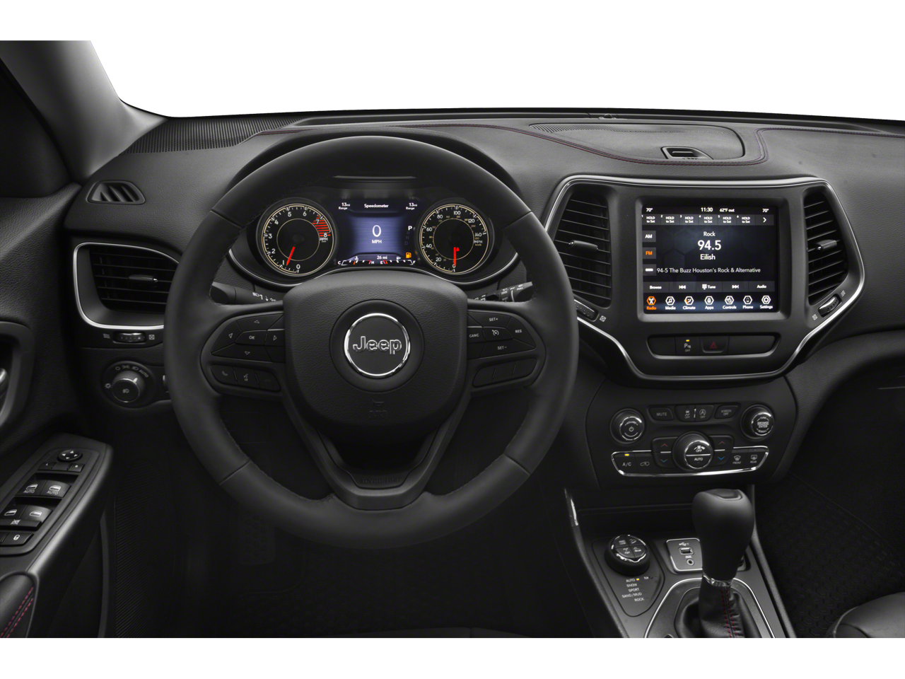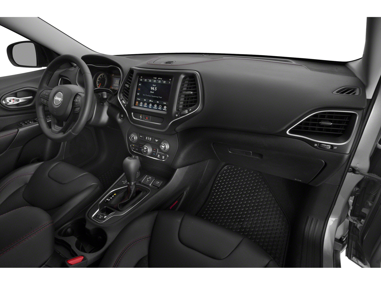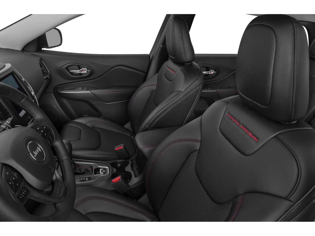 Below is all the standard equipment Quick Order Package 27E Trailhawk, Sun, Sound & Nav Group (1-Year SiriusXM Guardian Trial, 4G LTE Wi-Fi Hot Spot, 5-Year SiriusXM Traffic Service, 5-Year SiriusXM Travel Link Service, For Details Visit DriveUconnect.com, GPS Navigation, HD Radio, Off-Road Info Pages, Power Front/Fixed Rear Full Sunroof, Premium Alpine Speaker System, Radio: Uconnect 4C Nav w/8.4 Display, SiriusXM Traffic Plus, and SiriusXM Travel Link), Wheels: 17 x 7.5 Painted Diamond Cut Aluminum, 3.517 Axle Ratio, 4-Wheel Disc Brakes, 6 Speakers, ABS brakes, Air Conditioning, Alloy wheels, AM/FM radio: SiriusXM, Anti-whiplash front head restraints, Apple CarPlay/Android Auto, Automatic temperature control, AutoStick Automatic Transmission, Auxiliary Transmission Oil Cooler, Brake assist, Cloth/Premium Vinyl Bucket Seats, Compass, Delay-off headlights, Driver door bin, Driver vanity mirror, Dual front impact airbags, Dual front side impact airbags, Electronic Stability Control, Four wheel independent suspension, Front anti-roll bar, Front Bucket Seats, Front Center Armrest, Front dual zone A/C, Front fog lights, Front License Plate Bracket, Front reading lights, Fully automatic headlights, Heated door mirrors, Heated front seats, Heated steering wheel, Hill Descent Control, Illuminated entry, K-Black Door Trim Panel Appliques, K-Black Interior Accents, Knee airbag, Leather Shift Knob, Low tire pressure warning, Occupant sensing airbag, Off Road Suspension, Outside temperature display, Overhead airbag, Overhead console, Panic alarm, ParkView Rear Back-Up Camera, Passenger door bin, Passenger vanity mirror, Power door mirrors, Power driver seat, Power steering, Power windows, Radio data system, Radio: Uconnect 4 w/8.4 Display, Rain sensing wipers, Rear anti-roll bar, Rear reading lights, Rear seat center armrest, Rear side impact airbag, Rear window defroster, Rear window wiper, Remote keyless entry, Speed control, Speed-sensing steering, Split folding rear seat, Spoiler, Steering wheel mounted audio controls, Tachometer, Telescoping steering wheel, Tilt steering wheel, Traction control, Trip computer, Turn signal indicator mirrors, Variably intermittent wipers, and VoltmeteR.