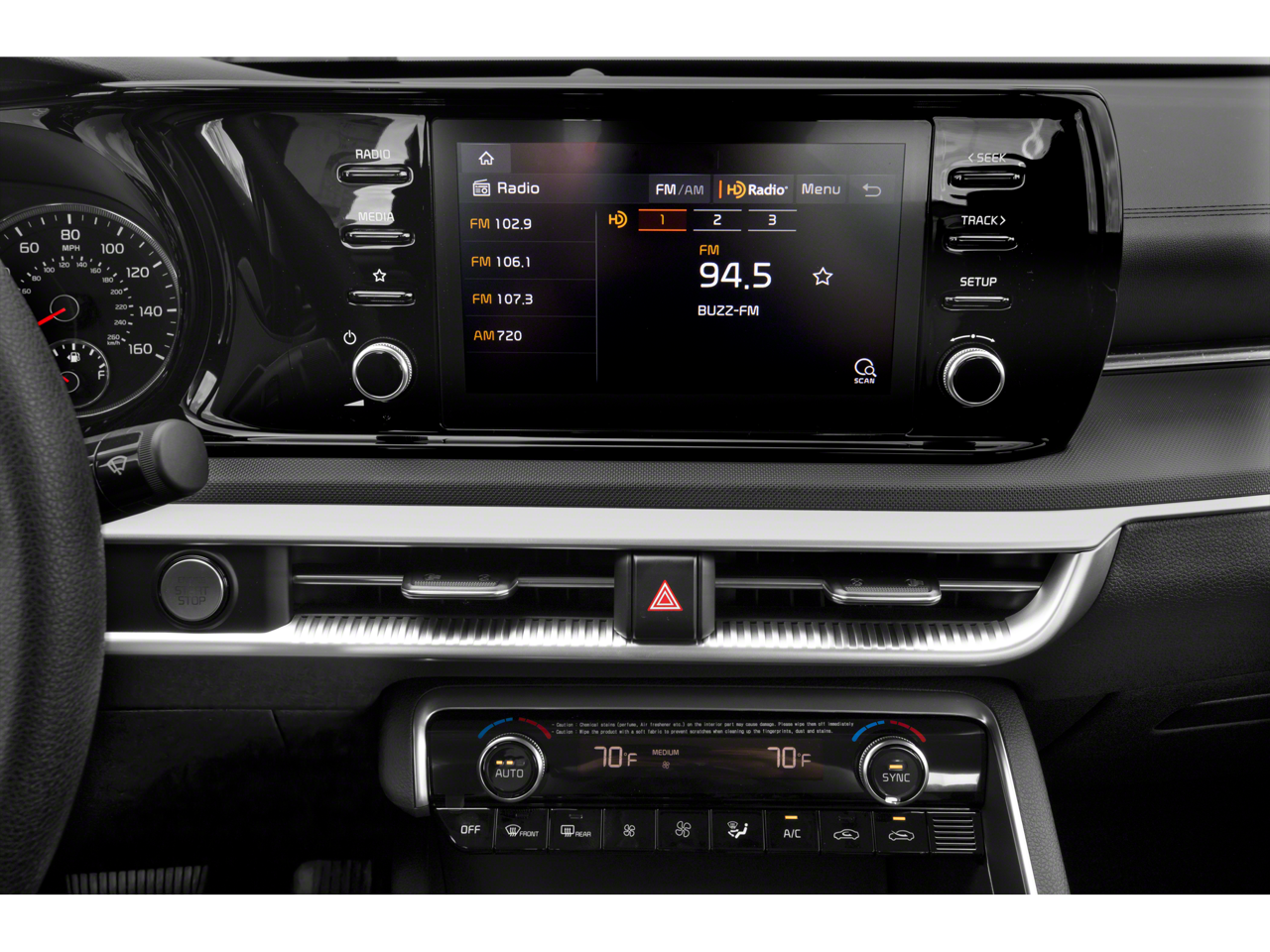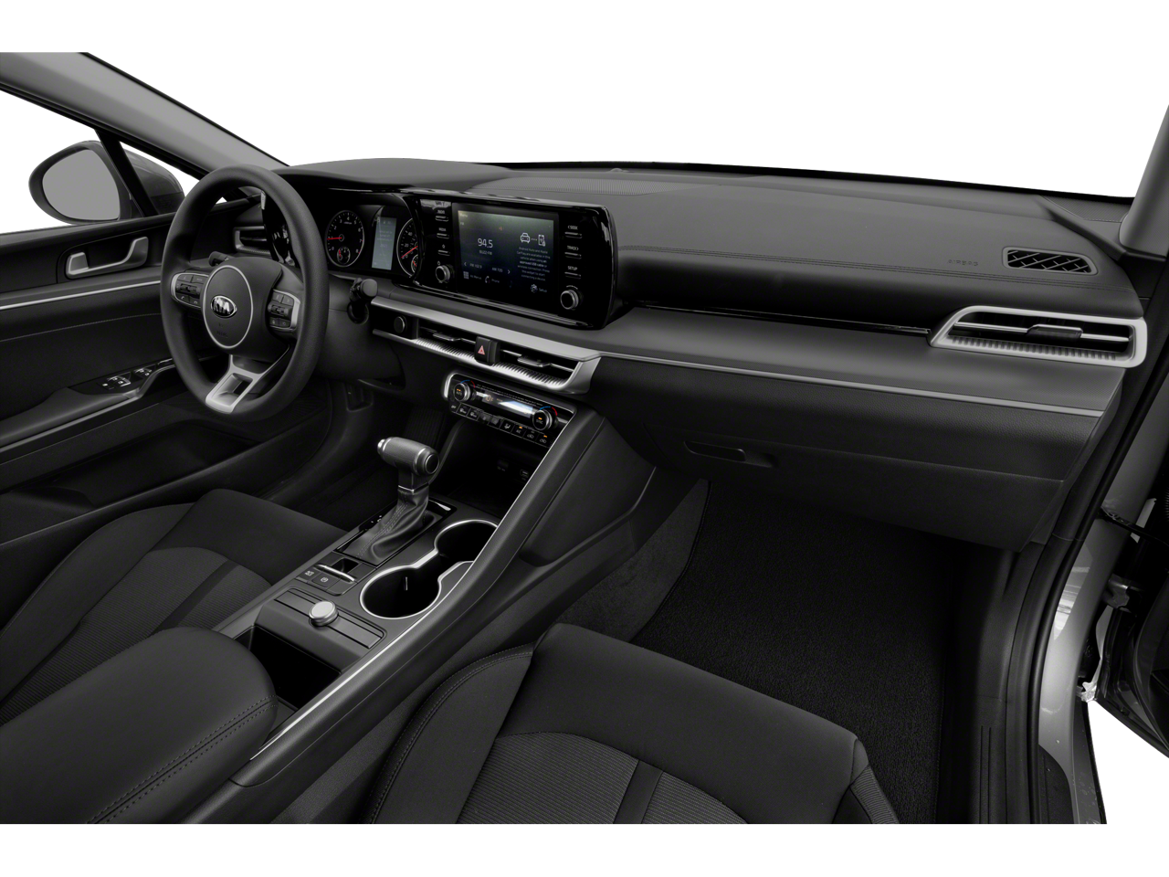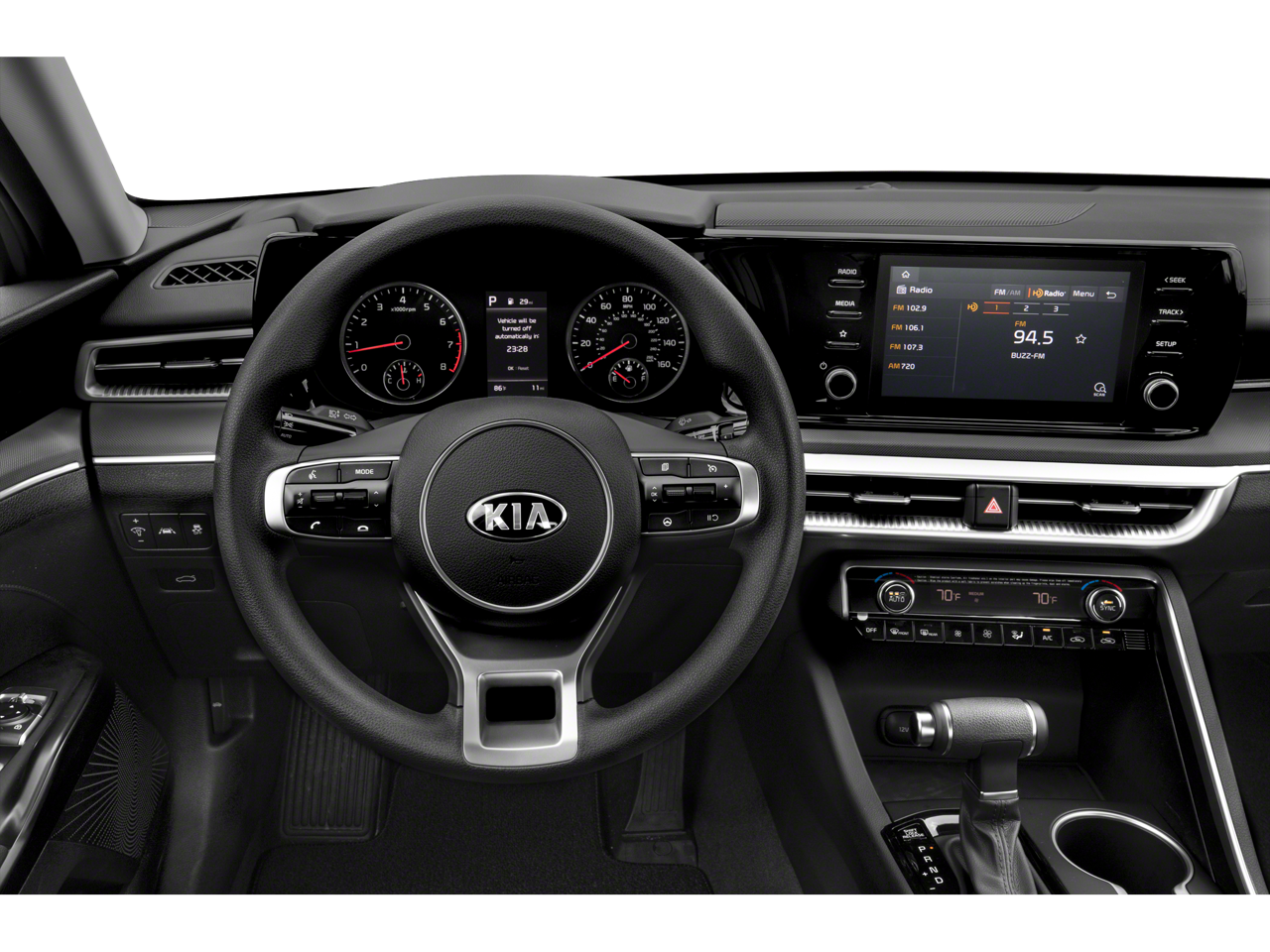 2021 Kia K5 LXS in Glacial White Pearl with Sand Cloth.