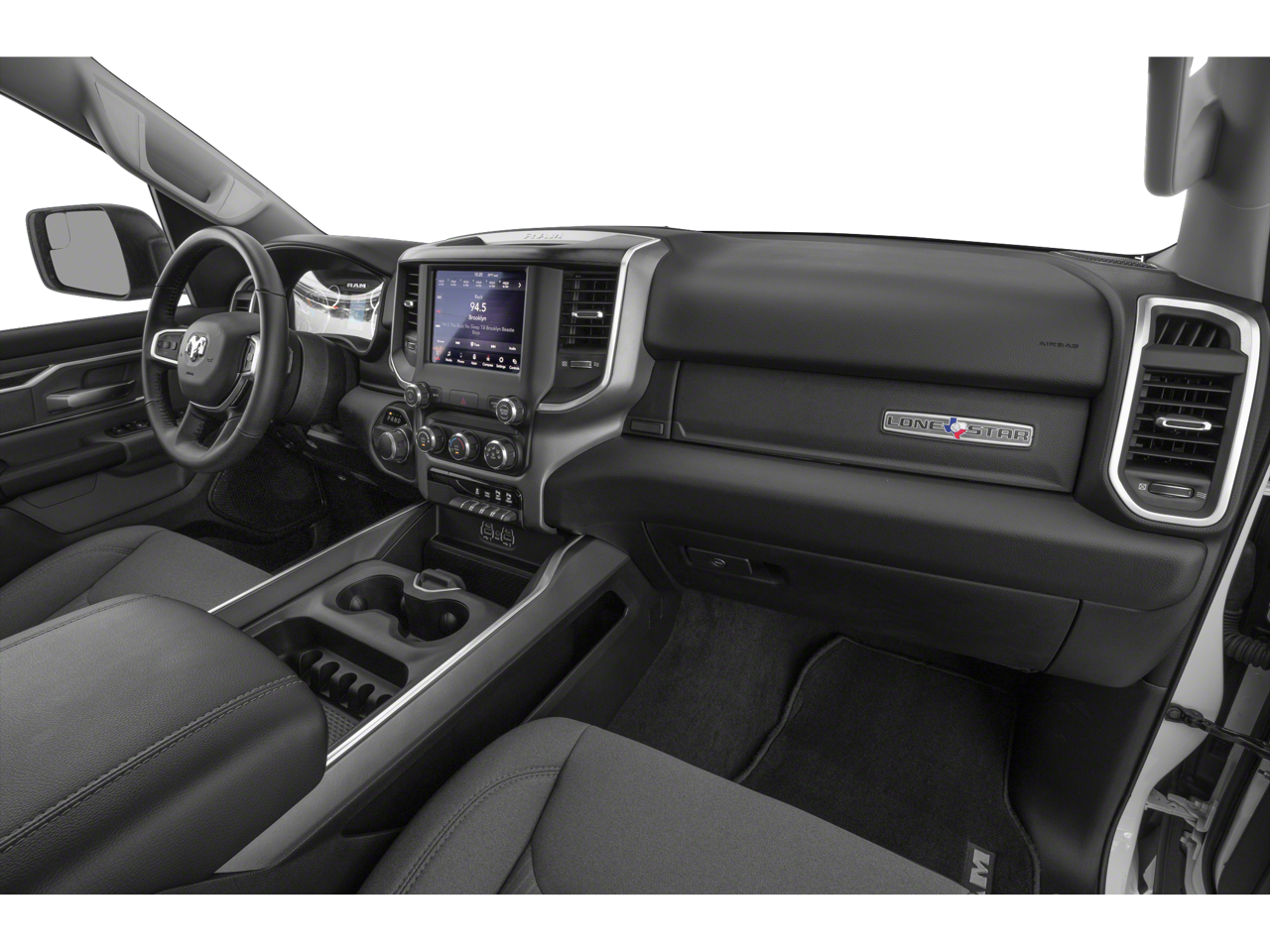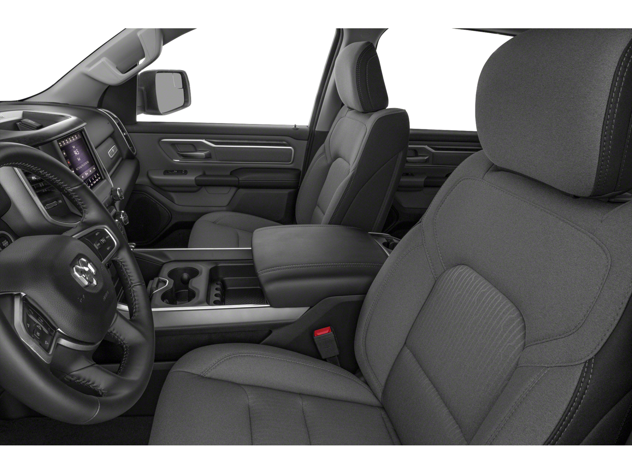 Below is all the standard equipment Bed Utility Group (MOPAR 4 Adjustable Cargo Tie-Down Hooks, MOPAR Deployable Bed Step, MOPAR Spray In Bedliner, and Pick-Up Box Lighting), Big Horn Level 2 Equipment Group (115V Auxiliary Power Outlet, 115V Auxiliary Rear Power Outlet, 2nd Row In Floor Storage Bins, 400W Inverter, Air Conditioning ATC w/Dual Zone Control, Auto-Dimming Exterior Driver Mirror, Auto-Dimming Rear-View Mirror, Black Premium Power Mirrors, Class IV Receiver Hitch, Cluster 7.0 TFT Color Display, Exterior Mirrors Courtesy Lamps, Exterior Mirrors w/Supplemental Signals, Foam Bottle Insert (Door Trim Panel), For More Info, Call 800-643-2112, Glove Box Lamp, Heated Front Seats, Heated Steering Wheel, Media Hub w/2 Charge Only USBs, ParkSense Front/Rear Park Assist w/Stop, Power 4-Way Driver Lumbar Adjust, Power 8-Way Driver Seat, Power Adjustable Pedals, Power-Folding Mirrors, Rear Dome w/On/Off Switch Lamp, Rear Power Sliding Window, Rear Window Defroster, Security Alarm, SiriusXM Radio Service, Sun Visors w/Illuminated Vanity Mirrors, and Universal Garage Door Opener), Quick Order Package 25Z Big Horn (Big Horn Badge), Certified Pre-Owned Certified, 9 Amplified Speakers w/Subwoofer, Exterior 115V AC Outlet, RamBox Cargo Management System, 3 Rear Seat Head Restraints, 3.21 Rear Axle Ratio, 4 Way Front Headrests, 4-Wheel Disc Brakes, 40/20/40 Split Bench Seat, 48V Belt Starter Generator, 6 Speakers, ABS brakes, Air Conditioning, Alloy wheels, AM/FM radio, Black Exterior Mirrors, Brake assist, Bumpers: chrome, Cloth Bench Seat, Compass, Delay-off headlights, Driver door bin, Dual front impact airbags, Dual front side impact airbags, Electronic Stability Control, Front anti-roll bar, Front Center Armrest w/Storage, Front fog lights, Front reading lights, Front Seat Back Map Pockets, Front wheel independent suspension, Fully automatic headlights, GPS Antenna Input, Heated door mirrors, Illuminated entry, Integrated Voice Command w/Bluetooth®, Leather steering wheel, Low tire pressure warning, Manufacturer's Statement of Origin, Occupant sensing airbag, Outside temperature display, Overhead airbag, Overhead console, Panic alarm, ParkView Rear Back-Up Camera, Passenger door bin, Passenger vanity mirror, Power door mirrors, Power steering, Power windows, Radio data system, Radio: Uconnect 3 w/5 Display, Radio: Uconnect 4 w/8.4 Display, Rear 60/40 Folding Seat, Rear anti-roll bar, Rear seat center armrest, Rear step bumper, Remote keyless entry, Remote Start System, Speed control, Split folding rear seat, Steering wheel mounted audio controls, Tachometer, Telescoping steering wheel, Tilt steering wheel, Traction control, Trip computer, Variably intermittent wipers, Voltmeter, and Wheels: 18 x 8 Cast-Aluminum Painted.