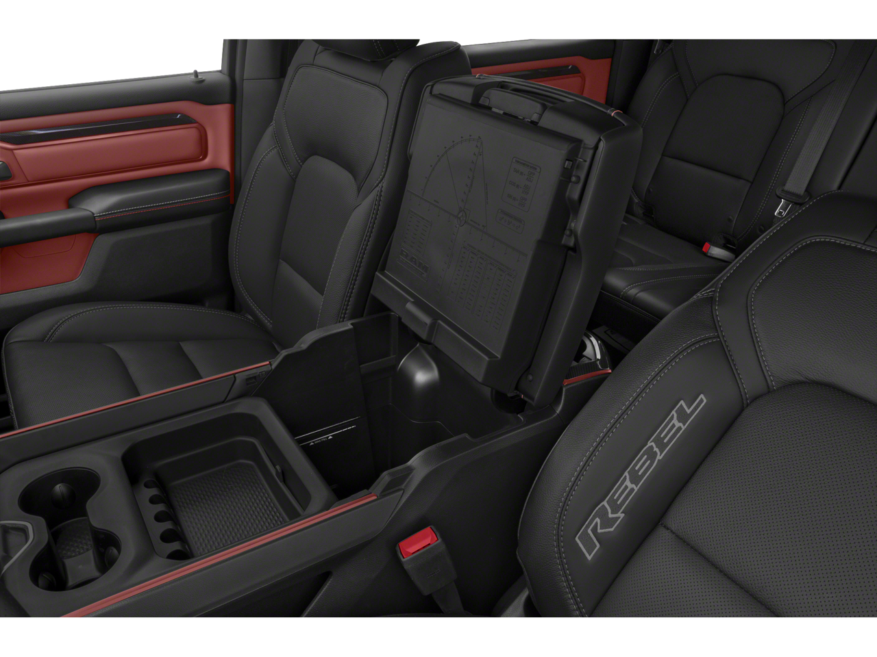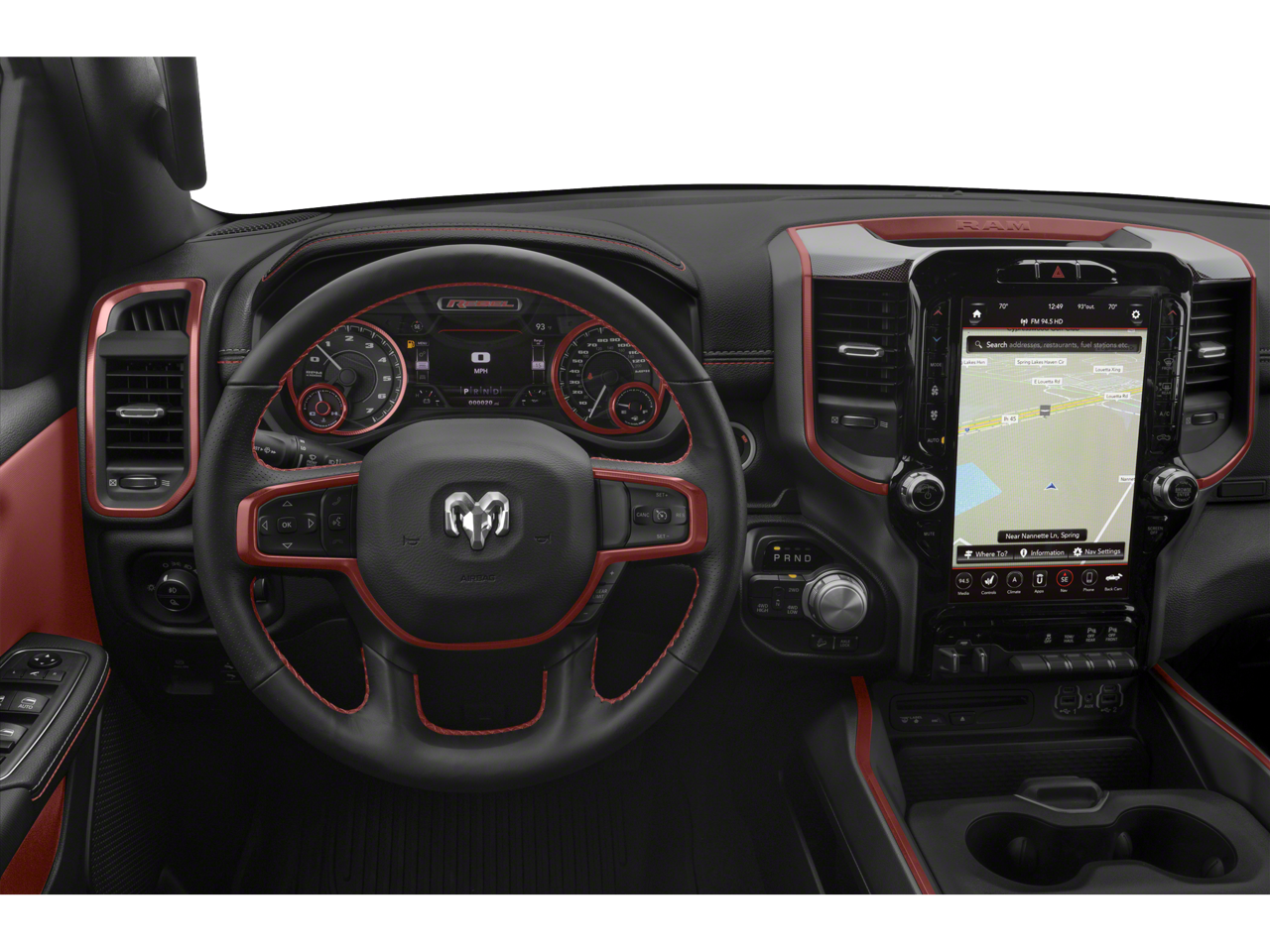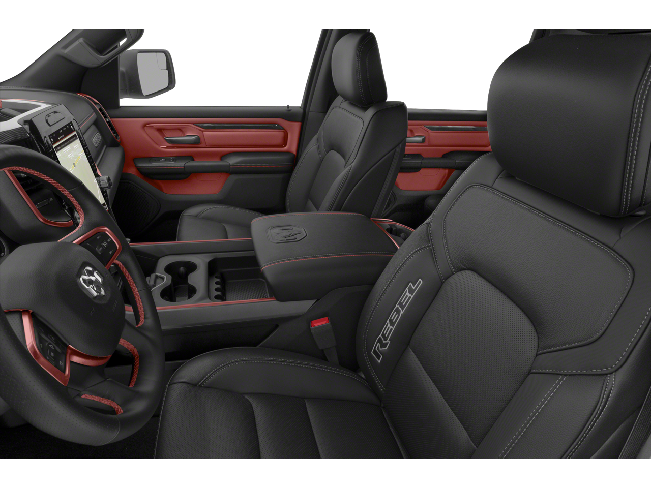 Below is all the standard equipment Advanced Safety Group (Adaptive Cruise Control w/Stop & Go, Auto High Beam Headlamp Control, Lane Keep Assist, Parallel & Perp Park Assist w/Stop, Pedestrian Emergency Braking, and Surround View Camera System), Bed Utility Group (MOPAR 4 Adjustable Cargo Tie-Down Hooks, MOPAR Deployable Bed Step, and Pick-Up Box Lighting), Comfort/Convenience Group (Driver Seat Memory, Exterior Mirrors w/Memory, Heated Second Row Seats, Power 4-Way Driver Lumbar Adjust, Power 4-Way Passenger Lumbar Adjust, Power 8-Way Driver & Passenger Seats, Remote Tailgate Release, and Wireless Charging Pad), Night Edition (Black Front Bumper w/Black Plate, Grille Moustache Black Outline Texture 3, RAM Grille Badge - Black, and Wheels: 18 x 8.0 Gloss Black), Quick Order Package 25W Rebel, Rebel 12A (12 Touchscreen Display, 4 Way Front Headrests, 4G LTE Wi-Fi Hot Spot, 9 Amplified Speakers w/Subwoofer, Apple CarPlay, Bucket Seats, Disassociated Touchscreen Display, For Details, Visit DriveUconnect.com, For More Info, Call 800-643-2112, Front Seat Back Map Pockets, Full Length Upgraded Floor Console, Google Android Auto, GPS Antenna Input, GPS Navigation, HD Radio, Heated Front Seats, Heated Steering Wheel, Integrated Center Stack Radio, Integrated Voice Command w/Bluetooth®, LED Footwell Lighting, Lux Leather Trimmed Bucket Seats, Radio: Uconnect 12 w/Navigation, Rear 60/40 Folding Seat, SiriusXM Radio Service, SiriusXM Satellite Radio, SiriusXM Traffic Plus, SiriusXM Travel Link, SiriusXM w/360L, and USB Host Flip), Rebel Level 2 Equipment Group (115V Auxiliary Rear Power Outlet, Air Conditioning ATC w/Dual Zone Control, Auto-Dimming Exterior Driver Mirror, Black Premium Power Mirrors, Body Color Door Handles, Exterior Mirrors Courtesy Lamps, Exterior Mirrors w/Supplemental Signals, Foam Bottle Insert (Door Trim Panel), Media Hub w/2 Charge Only USBs, ParkSense Front/Rear Park Assist w/Stop, Power Adjustable Pedals, Power-Folding Mirrors, Radio: Uconnect 4 w/8.4 Display, Rain Sensitive Windshield Wipers, Rear Dome w/On/Off Switch Lamp, Rear Underseat Compartment Storage, Rear Window Defroster, Remote Proximity Keyless Entry, Security Alarm, Sun Visors w/Illuminated Vanity Mirrors, and Universal Garage Door Opener), Technology Group (Heads-Up Display, LED CHMSL Lamp, and Rearview Autodim Digital Display Mirror), 3.92 Rear Axle Ratio, 4-Wheel Disc Brakes, 48V Belt Starter Generator, 6 Speakers, ABS brakes, Air Conditioning, Alloy wheels, AM/FM radio: SiriusXM, Auto-dimming Rear-View mirror, Black Exterior Mirrors, Blind Spot & Cross Path Detection, Brake assist, Cloth/Vinyl Low Back Bucket Seats, Compass, Delay-off headlights, Driver door bin, Dual front impact airbags, Dual front side impact airbags, Electric Shift-On-Demand Transfer Case, Electronic Stability Control, Front anti-roll bar, Front Bucket Seats, Front Center Armrest w/Storage