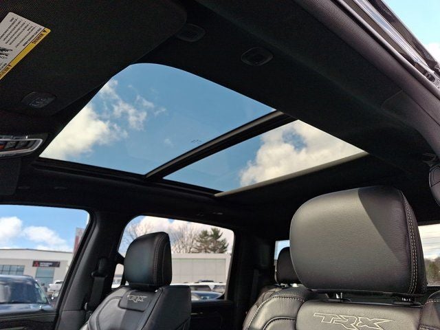 Below is all the standard equipment Quick Order Package 29Y, TRX Level 2 Equipment Group (4 Way Front Headrests, Blind Spot & Cross Path Detection, Body Color Door Handles, Bucket Seats, Driver Seat Memory, Driver/Passenger Wrapped Assist Handles, Exterior Mirrors w/Memory, Front Door Accent Lighting, Full Length Premium Upgraded Floor Console, Heated Front Seats, Heated Second Row Seats, Heated Steering Wheel, IP LED Ambient Light Pipe, Leather Trimmed Bucket Seats, Leather/Suede Flat-Bottom Steering Wheel, Luxury Front Door Trim Panel, ParkSense Front/Rear Park Assist w/Stop, Pick-Up Box Lighting, Power 4-Way Driver Lumbar Adjust, Power 4-Way Passenger Lumbar Adjust, Power 8-Way Driver & Passenger Seats, Power Adjustable Pedals w/Memory, Premium Wrapped IP Bezel, Radio/Driver Seat/Mirrors/Pedals Memory, Rain Sensitive Windshield Wipers, Rear 60/40 Folding Split Recline Seat, Rear Door Accent Lighting, Rear Underseat Compartment Storage, Rear Window Defroster, Remote Proximity Keyless Entry, Remote Start System, Remote Tailgate Release, Sun Visors w/Illuminated Vanity Mirrors, Surround View Camera System, Trailer Brake Control, Universal Garage Door Opener, Ventilated Front Seats, Ventilated Rear Seats, and Wireless Charging Pad), Dome Dual LED Reading Lamp, Dual-Pane Panoramic Sunroof, 10 Speakers, 3.55 Rear Axle Ratio, 4-Wheel Disc Brakes, ABS brakes, Adaptive suspension, Air Conditioning, Alloy wheels, AM/FM radio: SiriusXM with 360L, Apple CarPlay/Android Auto, Auto High-beam Headlights, Auto-dimming door mirrors, Auto-dimming Rear-View mirror, Automatic temperature control, Black Exterior Mirrors, Brake assist, Cloth/Vinyl Bucket Seats, Compass, Delay-off headlights, Driver door bin, Dual front impact airbags, Dual front side impact airbags, Electronic Stability Control, Emergency communication system: SiriusXM Guardian, Exterior Mirrors Courtesy Lamps, Exterior Mirrors w/Heating Element, Exterior Mirrors w/Supplemental Signals, Front anti-roll bar, Front Bucket Seats, Front Center Armrest w/Storage, Front dual zone A/C, Front fog lights, Front License Plate Bracket, Front reading lights, Front wheel independent suspension, Fully automatic headlights, harman/kardon 19 Speaker Premium Sound, Heated door mirrors, Illuminated entry, Leather Shift Knob, Leather steering wheel, Low tire pressure warning, Manufacturer's Statement of Origin, MOPAR Rock Rails, MOPAR TRX Exterior Graphics, MOPAR TRX Hood Graphics, Navigation System, Occupant sensing airbag, Outside temperature display, Overhead airbag, Overhead console, Panic alarm, ParkView Rear Back-Up Camera, Passenger door bin, Passenger vanity mirror, Power door mirrors, Power driver seat, Power steering, Power windows, Power-Folding Mirrors, Radio data system, Radio: Uconnect 12 w/Navigation, Rear seat center armrest, Rear step bumper, Remote keyless entry, Security system, Speed control, Split folding re