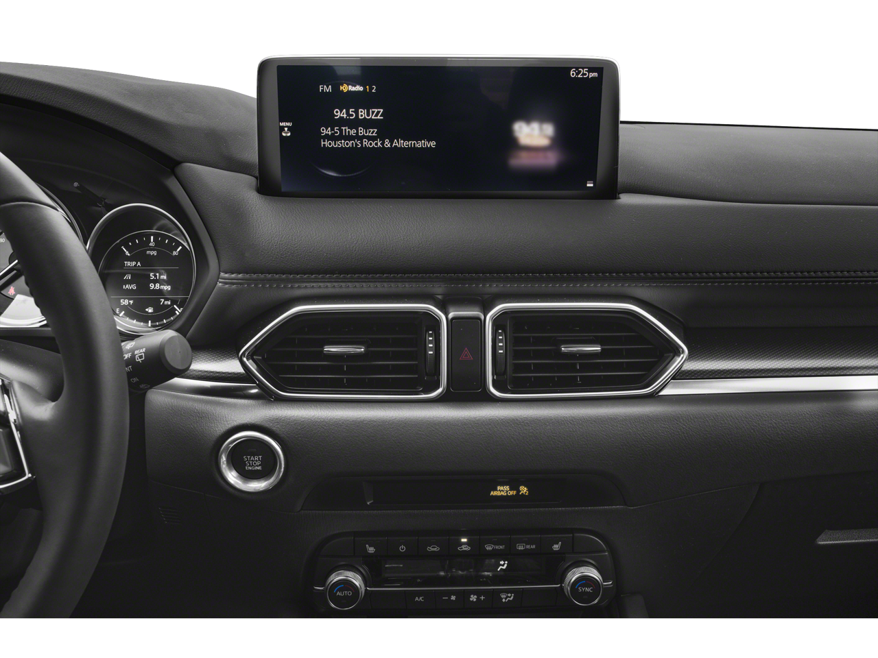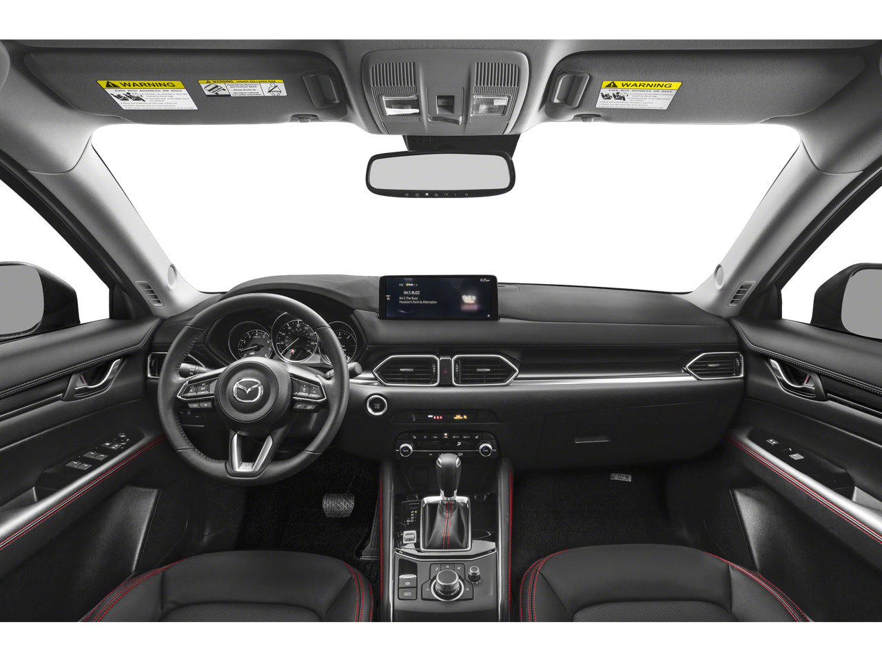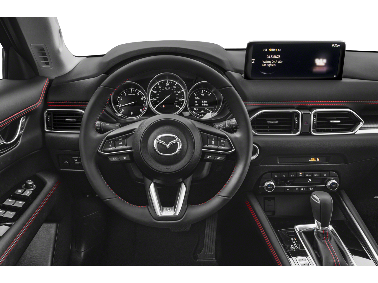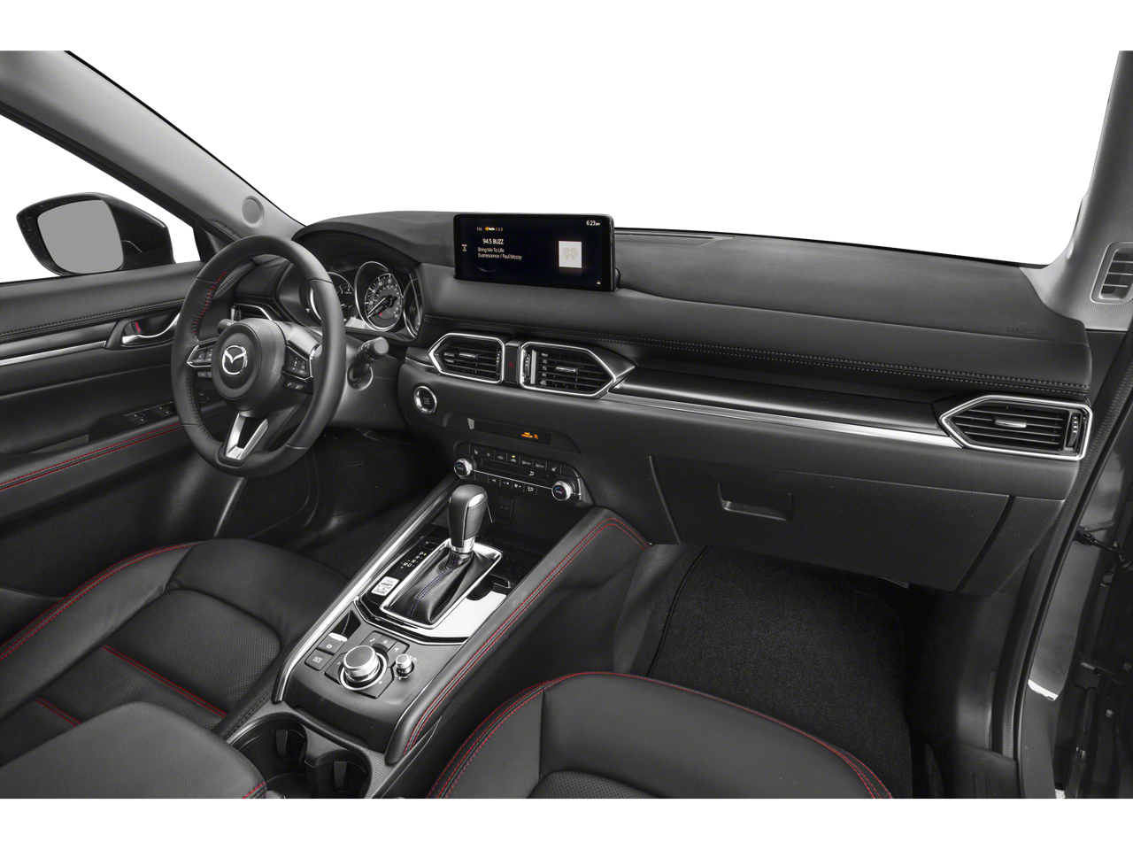 Below is all the standard equipment Navigation System, 4-Wheel Disc Brakes, 4.624 Axle Ratio, 6 Speakers, ABS brakes, Air Conditioning, Alloy wheels, AM/FM radio, AppLink/Apple CarPlay and Android Auto, Auto High-beam Headlights, Auto-dimming Rear-View mirror, Automatic temperature control, Bose Audio Credit, Brake assist, Bumpers: body-color, Delay-off headlights, Driver door bin, Driver vanity mirror, Dual front impact airbags, Dual front side impact airbags, E911 Automatic Emergency Notification, Electronic Stability Control, Emergency communication system: MAZDA CONNECT, Exterior Parking Camera Rear, Four wheel independent suspension, Front anti-roll bar, Front Bucket Seats, Front Center Armrest w/Storage, Front dual zone A/C, Front reading lights, Fully automatic headlights, Garage door transmitter: HomeLink, Heated Front Bucket Seats, Heated front seats, Illuminated entry, Infotainment System Voice Command, Leather Seat Trim, Leather Shift Knob, Low tire pressure warning, Memory seat, Multifunction Commander Control, Occupant sensing airbag, Outside temperature display, Overhead airbag, Overhead console, Pandora, Panic alarm, Passenger door bin, Passenger vanity mirror, Power door mirrors, Power driver seat, Power moonroof, Power passenger seat, Power steering, Power windows, Radio Broadcast Data System Program Information, Radio data system, Radio: AM/FM/HD Audio System, Rain sensing wipers, Rear anti-roll bar, Rear reading lights, Rear seat center armrest, Rear window defroster, Rear window wiper, Remote keyless entry, SMS Text Msg Audio Delivery & Reply, Speed control, Speed-sensing steering, Split folding rear seat, Spoiler, Steering wheel mounted audio controls, Tachometer, Telescoping steering wheel, Tilt steering wheel, Traction control, Trip computer, Turn signal indicator mirrors, and Variably intermittent wipers.