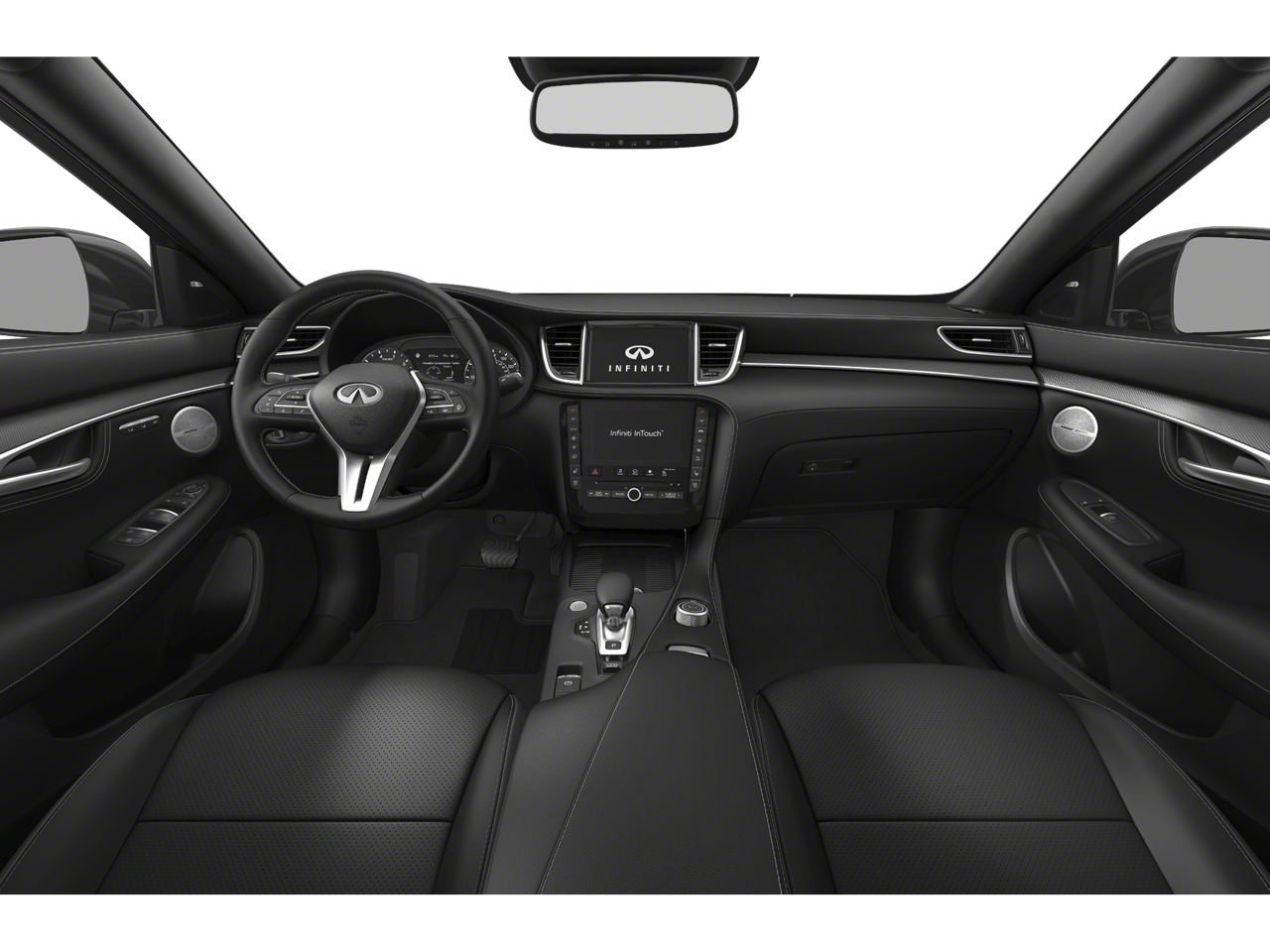 Below is all the standard equipment ProACTIVE Package (Direct Adaptive Steering, Head-Up Display, Intelligent Cruise Control (Full-Speed Range), ProPILOT Assist, Steering Assist, and Traffic Sign Recognition), ProASSIST Package (Adaptive Front Lighting System, Blind Spot Intervention, Cube Design LED Headlights, Distance Control Assist, Intelligent Cruise Control, and Lane Departure Prevention), 16 Speakers, 4-Wheel Disc Brakes, 5.846 Axle Ratio, ABS brakes, Air Conditioning, Alloy wheels, AM/FM radio: SiriusXM, Auto High-beam Headlights, Auto tilt-away steering wheel, Auto-dimming Rear-View mirror, Automatic temperature control, Black Splash Guards (Set of 4), Blind Spot Warning, Brake assist, Bumpers: body-color, Carpeted Floor Mats, CD player, Climate Controlled Front Bucket Seats, Delay-off headlights, Driver door bin, Driver vanity mirror, Dual front impact airbags, Dual front side impact airbags, Electronic Stability Control, Emergency communication system: INFINITI InTouch, Exclusive Paint, Four wheel independent suspension, Front anti-roll bar, Front Bucket Seats, Front Center Armrest, Front dual zone A/C, Front fog lights, Front reading lights, Fully automatic headlights, Garage door transmitter: HomeLink, Heated door mirrors, Heated front seats, Heated steering wheel, Illuminated entry, Illuminated Kick Plates, Knee airbag, Leather Shift Knob, Leather-Appointed Seat Trim, Low tire pressure warning, Memory seat, Navigation system: INFINITI InTouch Navigation, Occupant sensing airbag, Outside temperature display, Overhead airbag, Overhead console, Panic alarm, Passenger door bin, Passenger vanity mirror, Power door mirrors, Power driver seat, Power Liftgate, Power moonroof, Power passenger seat, Power steering, Power windows, Radio data system, Radio: Bose Performance Series Premium Audio, Rain sensing wipers, Rear anti-roll bar, Rear reading lights, Rear seat center armrest, Rear window defroster, Rear window wiper, Remote keyless entry, Security system, Speed control, Speed-sensing steering, Speed-Sensitive Wipers, Split folding rear seat, Spoiler, Steering wheel memory, Steering wheel mounted audio controls, Tachometer, Telescoping steering wheel, Tilt steering wheel, Traction control, Trip computer, Turn signal indicator mirrors, Variably intermittent wipers, Ventilated front seats, and Wheels: 20 x 8.5 Machine Finish Aluminum Alloy.