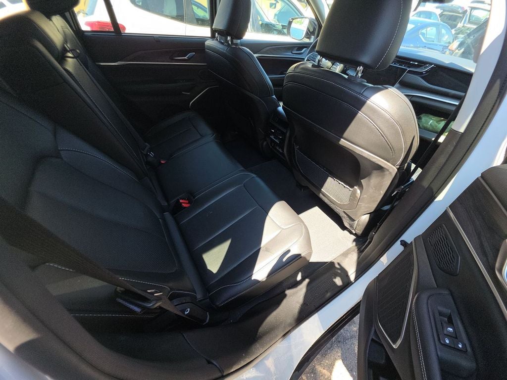 Below is all the standard equipment Luxury Tech Group II (2nd-Row Manual Window Shades, Auto-Dimming Exterior Driver Mirror, Capri Leather Seats w/Perforated Inserts, Integrated Off-Road Camera, Intersection Collision Assist System, Memory Steering Column, ParkSense Front/Rear Park Assist w/Stop, Passive Entry - Front/Rear Doors, Liftgate, Power Tilt/Telescope Steering Column, Rain Sensitive Windshield Wipers, Rear Back Up Camera Washer, Rearview Autodim Digital Display Mirror, Surround View Camera System, Ventilated Front Seats, and Wireless Charging Pad), Quick Order Package 27F, 2.0L I4 DOHC, 4WD, GPS Navigation, Wheels: 20 x 8.5 Polished/Painted Aluminum, 10 Speakers, 10.1 Touchscreen Display, 3.70 Rear Axle Ratio, 4-Wheel Disc Brakes, 4G LTE Wi-Fi Hot Spot, ABS brakes, Air Conditioning, All Radio Equipped Vehicles, Alloy wheels, AM/FM radio: SiriusXM with 360L, Anti-whiplash front head restraints, Apple CarPlay, Audio memory, Auto High-beam Headlights, Automatic temperature control, Brake assist, Bumpers: body-color, Capri Leather Seats, Compass, Connected Travel & Traffic Services, Connectivity - US/Canada, Delay-off headlights, Disassociated Touchscreen Display, Driver door bin, Driver vanity mirror, Dual front impact airbags, Dual front side impact airbags, Dual-Pane Panoramic Sunroof (DISC), Electronic Stability Control, For Details, Visit DriveUconnect.com, For More Info, Call 800-643-2112, Four wheel independent suspension, Front anti-roll bar, Front Bucket Seats, Front Center Armrest w/Storage, Front dual zone A/C, Front fog lights, Front Passenger Interactive Display, Front reading lights, Fully automatic headlights, Garage door transmitter, Global Telematics Box Module (TBM), Google Android Auto, GPS Antenna Input, HD Radio, Heated door mirrors, Heated front seats, Heated rear seats, Heated steering wheel, Heavy Duty Suspension, Illuminated entry, Integrated Center Stack Radio, Integrated Voice Command w/Bluetooth®, Knee airbag, Leather steering wheel, Low tire pressure warning, Memory seat, Occupant sensing airbag, Outside temperature display, Overhead airbag, Overhead console, Panic alarm, ParkView Rear Back-Up Camera, Passenger door bin, Passenger vanity mirror, Power door mirrors, Power driver seat, Power Liftgate, Power passenger seat, Power steering, Power windows, Pur Wrapped Instrument Panel, Radio data system, Radio: Uconnect 5 Nav w/10.1 Display, Radio: Uconnect 5 w/8.4 Display, Rear anti-roll bar, Rear reading lights, Rear window defroster, Rear window wiper, Remote keyless entry, Roof rack: rails only, Security system, SiriusXM Radio Service, SiriusXM Satellite Radio, SiriusXM w/360L, Speed control, Speed-Sensitive Wipers, Split folding rear seat, Spoiler, Steering wheel mounted audio controls, Tachometer, Telescoping steering wheel, Tilt steering wheel, Traction control, Trip