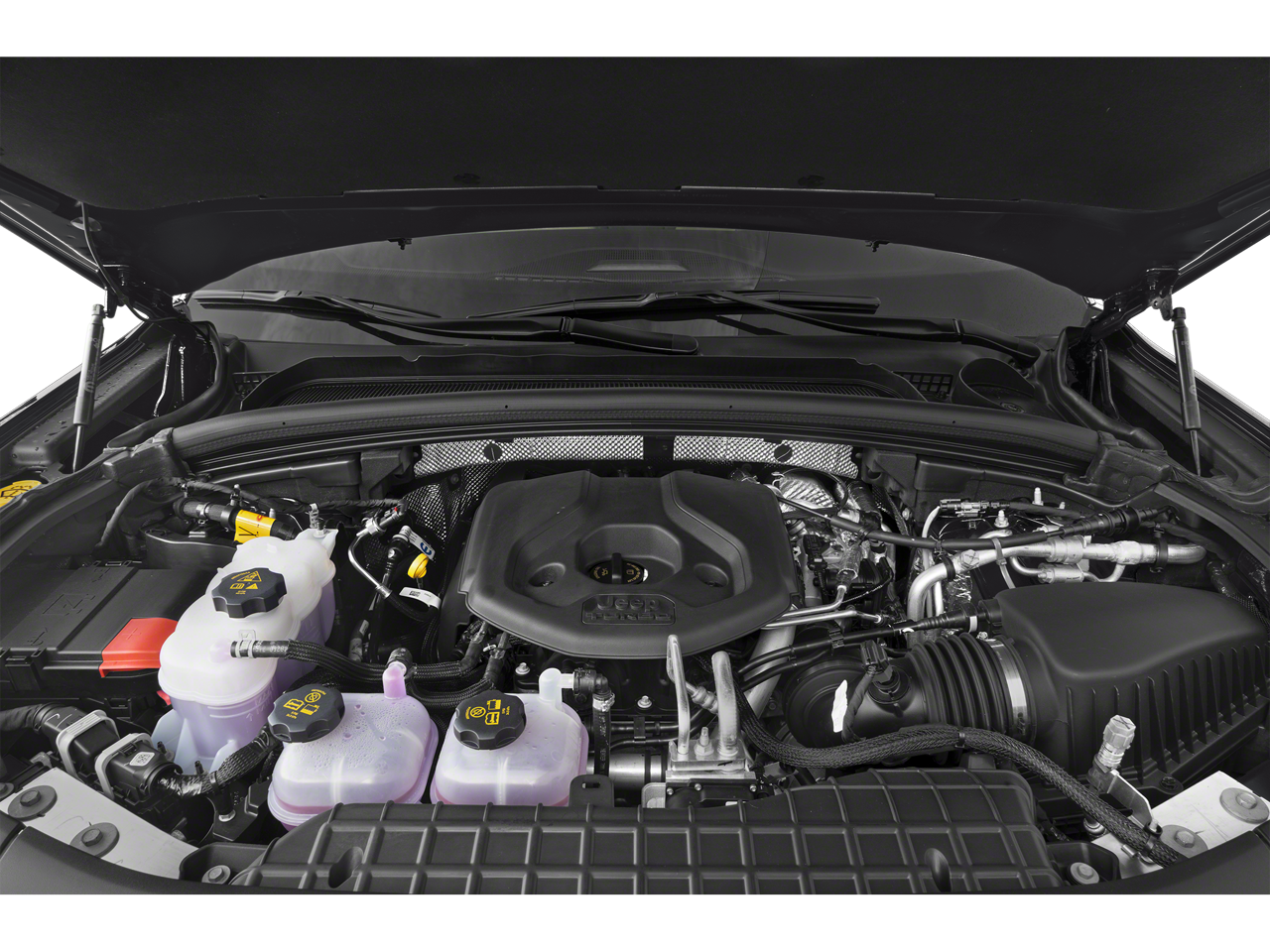 Below is all the standard equipment Luxury Tech Group II (2nd-Row Manual Window Shades, Auto-Dimming Exterior Driver Mirror, Capri Leather Seats w/Perforated Inserts, Integrated Off-Road Camera, Intersection Collision Assist System, Memory Steering Column, ParkSense Front/Rear Park Assist w/Stop, Passive Entry - Front/Rear Doors, Liftgate, Power Tilt/Telescope Steering Column, Rain Sensitive Windshield Wipers, Rear Back Up Camera Washer, Rearview Autodim Digital Display Mirror, Surround View Camera System, Ventilated Front Seats, and Wireless Charging Pad), Quick Order Package 27F, 2.0L I4 DOHC, 4WD, GPS Navigation, 10 Speakers, 10.1 Touchscreen Display, 3.70 Rear Axle Ratio, 4-Wheel Disc Brakes, 4G LTE Wi-Fi Hot Spot, ABS brakes, Air Conditioning, All Radio Equipped Vehicles, Alloy wheels, AM/FM radio: SiriusXM with 360L, Anti-whiplash front head restraints, Apple CarPlay, Audio memory, Auto High-beam Headlights, Automatic temperature control, Brake assist, Bumpers: body-color, Capri Leather Seats, Compass, Connected Travel & Traffic Services, Connectivity - US/Canada, Delay-off headlights, Disassociated Touchscreen Display, Driver door bin, Driver vanity mirror, Dual front impact airbags, Dual front side impact airbags, Dual-Pane Panoramic Sunroof (DISC), Electronic Stability Control, For Details, Visit DriveUconnect.com, For More Info, Call 800-643-2112, Four wheel independent suspension, Front anti-roll bar, Front Bucket Seats, Front Center Armrest w/Storage, Front dual zone A/C, Front fog lights, Front Passenger Interactive Display, Front reading lights, Fully automatic headlights, Garage door transmitter, Global Telematics Box Module (TBM), Google Android Auto, GPS Antenna Input, HD Radio, Heated door mirrors, Heated front seats, Heated rear seats, Heated steering wheel, Heavy Duty Suspension, Illuminated entry, Integrated Center Stack Radio, Integrated Voice Command w/Bluetooth®, Knee airbag, Leather steering wheel, Low tire pressure warning, Memory seat, Occupant sensing airbag, Outside temperature display, Overhead airbag, Overhead console, Panic alarm, ParkView Rear Back-Up Camera, Passenger door bin, Passenger vanity mirror, Power door mirrors, Power driver seat, Power Liftgate, Power passenger seat, Power steering, Power windows, Pur Wrapped Instrument Panel, Radio data system, Radio: Uconnect 5 Nav w/10.1 Display, Radio: Uconnect 5 w/8.4 Display, Rear anti-roll bar, Rear reading lights, Rear window defroster, Rear window wiper, Remote keyless entry, Roof rack: rails only, Security system, SiriusXM Radio Service, SiriusXM Satellite Radio, SiriusXM w/360L, Speed control, Speed-Sensitive Wipers, Split folding rear seat, Spoiler, Steering wheel mounted audio controls, Tachometer, Telescoping steering wheel, Tilt steering wheel, Traction control, Trip computer, Turn signal indicator mirrors, USB Host Flip, Variably intermittent wipers, Voltmeter, and Wheels: 18