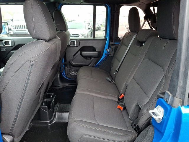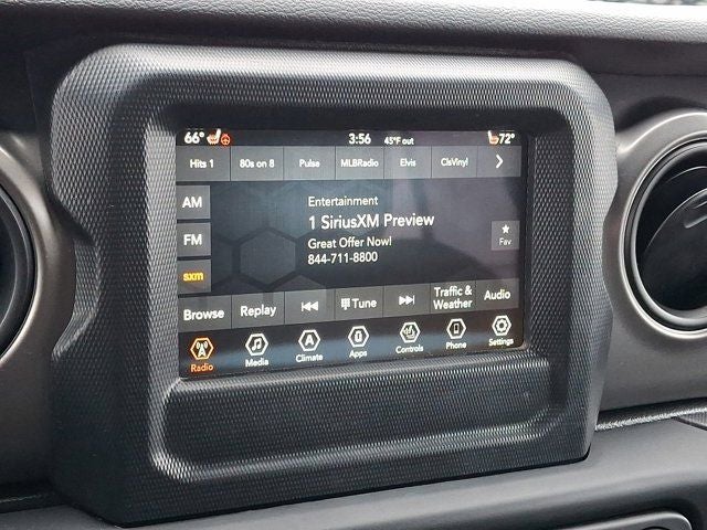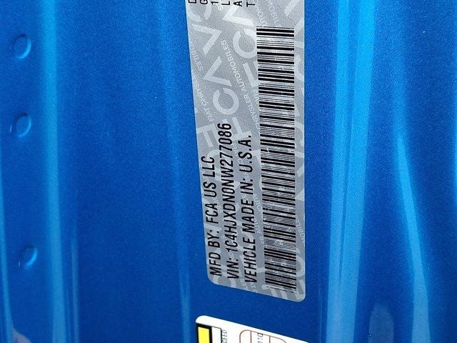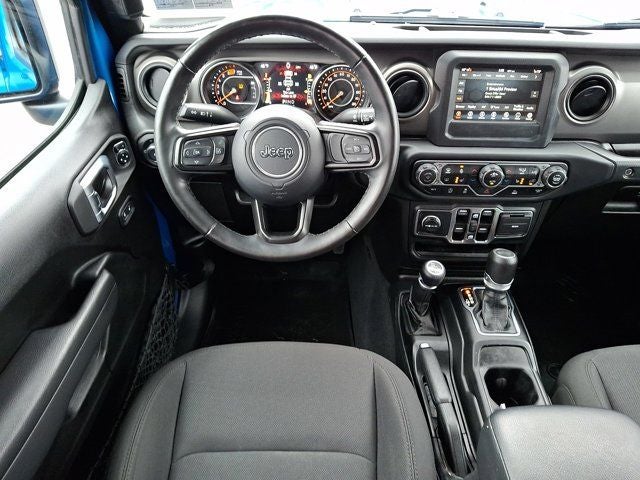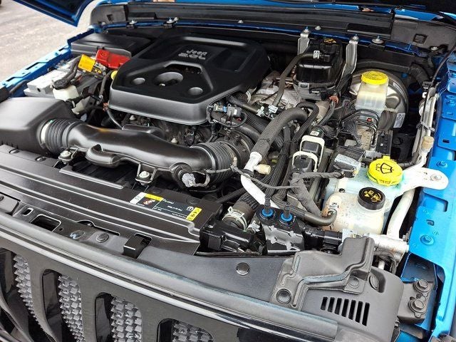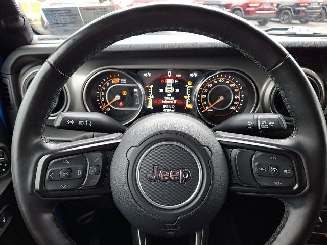 Below is all the standard equipment Cold Weather Group (Heated Front Seats, Heated Steering Wheel, and Leather Wrapped Steering Wheel), Convenience Group (Universal Garage Door Opener), LED Headlamp & Fog Lamp Group (Front LED Fog Lamps and LED Premium Reflector Headlamps), Quick Order Package 22W Willys (4-Wheel Drive Swing Gate Decal, 97 MPH Vehicle Max Speed Calibration, Anti-Spin Differential Rear Axle, Automatic Headlamps, Black Grille, Black Trail Rated Badge, Deep Tint Sunscreen Windows, Front 1-Touch Down Power Windows, Matte Black Jeep Badge, Mold In Color Bumper w/Gloss Black, MOPAR All-Weather Floor Mats, Power Heated Mirrors, Remote Keyless Entry, Security Alarm, Speed Sensitive Power Locks, Sun Visors w/Illuminated Vanity Mirrors, Wheels: 17 x 7.5 Moab Black Aluminum, Willys, and Willys Hood Decal), Technology Group (2-Door Passive Entry, Front Door Locks, Air Conditioning w/Auto Temperature Control, Air Filtering, Cluster 7.0 TFT Color Display, SiriusXM Radio Service, and SiriusXM Satellite Radio), FCA US LLC Certified Pre-Owned Certified, 110 MPH Vehicle Max Speed Calibration, 3.45 Rear Axle Ratio, 4-Wheel Disc Brakes, 8 Speakers, ABS brakes, Air Conditioning, AM/FM radio, Apple CarPlay/Android Auto, Aux Battery, Brake assist, Cloth Low-Back Bucket Seats, Compass, Delay-off headlights, Driver door bin, Driver vanity mirror, Dual front impact airbags, Dual front side impact airbags, Electronic Stability Control, Emergency communication system: SiriusXM Guardian, Engine Oil Cooler, Front anti-roll bar, Front Bucket Seats, Front Center Armrest w/Storage, Front fog lights, Front reading lights, Integrated roll-over protection, Low tire pressure warning, Non-Lock Fuel Cap w/o Discriminator, Normal Duty Suspension, Occupant sensing airbag, Outside temperature display, ParkView Rear Back-Up Camera, Passenger door bin, Passenger vanity mirror, Power steering, Premium Black Sunrider Soft Top, Radio data system, Radio: Uconnect 4 w/7 Display, Rear anti-roll bar, Rear reading lights, Speed control, Split folding rear seat, Steering wheel mounted audio controls, Stop-Start Dual Battery System, Tachometer, Telescoping steering wheel, Ti