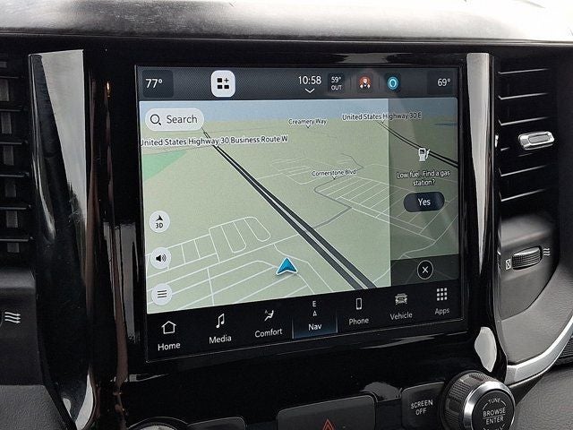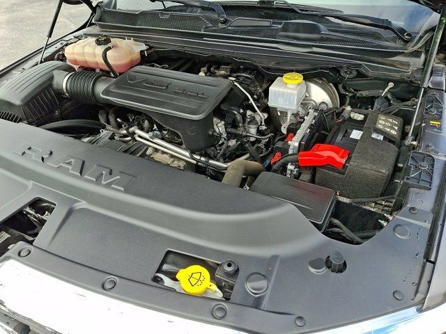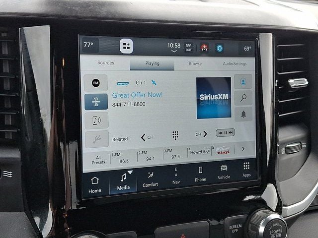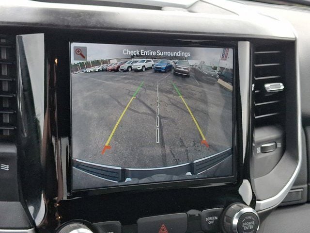 Below is all the standard equipment Big Horn Level 1 Equipment Group (2nd Row In Floor Storage Bins, 4G LTE Wi-Fi Hot Spot, 8.4 Touchscreen Display, Apple CarPlay, Auto-Dimming Exterior Driver Mirror, Auto-Dimming Rear-View Mirror, Black Exterior Mirrors, Black Premium Power Mirrors, Bluetooth® Handsfree Phone & Audio, Class IV Receiver Hitch, Cluster 3.5 TFT Color Display, Connectivity - US/Canada, Convex Wide-Angle Mirror Insert, Exterior Mirrors Courtesy Lamps, Exterior Mirrors w/Heating Element, Exterior Mirrors w/Supplemental Signals, For Details, Visit DriveUconnect.com, Global Telematics Box Module (TBM), Glove Box Lamp, Google Android Auto, GPS Antenna Input, Integrated Center Stack Radio, Power 2-Way Driver Lumbar Adjust, Power 8-Way Driver Seat, Power Adjustable Pedals, Power-Folding Mirrors, Radio: Uconnect 5 W w/8.4 Display, Rear Dome w/On/Off Switch Lamp, Rear Power Sliding Window, Rear Window Defroster, SiriusXM Radio Service, SiriusXM Satellite Radio, Sun Visors w/Illuminated Vanity Mirrors, Universal Garage Door Opener, and USB Host Flip), Quick Order Package 23Z Big Horn (Big Horn Badge), Certified Pre-Owned Certified, Wheels: 20 x 9 Aluminum Chrome Clad (WRK), 3 Rear Seat Head Restraints, 3.21 Rear Axle Ratio, 4 Way Front Headrests, 4-Wheel Disc Brakes, 48V Belt Starter Generator, 6 Speakers, ABS brakes, Air Conditioning, Air Conditioning ATC w/Dual Zone Control, All R1 High Radios, All Radio Equipped Vehicles, Alloy wheels, AM/FM radio, Brake assist, Bumpers: chrome, Cloth Bench Seat, Cluster 7.0 TFT Color Display, Compass, Connected Travel & Traffic Services, Delay-off headlights, Disassociated Touchscreen Display, Driver door bin, Dual front impact airbags, Dual front side impact airbags, Electronic Stability Control, Emergency communication system: SiriusXM Guardian, Front anti-roll bar, Front Center Armrest w/Storage, Front fog lights, Front reading lights, Front Seat Back Map Pockets, Front wheel independent suspension, Fully automatic headlights, GPS Navigation, HD Radio, Heated door mirrors, Illuminated entry, Integrated Voice Command w/Bluetooth®, Leather steering wheel, Low tire pressure warning, MOPAR Front & Rear Rubber Floor Mats, Occupant sensing airbag, Outside temperature display, Overhead airbag, Overhead console, Panic alarm, ParkView Rear Back-Up Camera, Passenger door bin, Passenger vanity mirror, Power door mirrors, Power steering, Power windows, Radio data system, Radio: Uconnect 3 w/5 Display, Radio: Uconnect 5 Nav w/8.4 Display, Rear 60/40 Folding Seat, Rear anti-roll bar, Rear seat center armrest, Rear step bumper, Rear Wheelhouse Liners, Remote keyless entry, SiriusXM w/360L, Speed control, Split folding rear seat, Steering wheel mounted audio controls, Tachometer, Telescoping ste