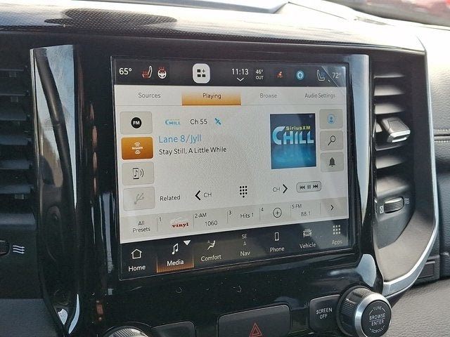 Below is all the standard equipment Bed Utility Group (LED Bed Lighting, MOPAR Deployable Bed Step, and MOPAR Spray In Bedliner), Heavy Duty Snow Plow Prep Group (220 Amp Alternator), Laramie Level C Equipment Group (DISC) (2nd Row In Floor Storage Bins, Auto High Beam Headlamp Control, Exterior Mirrors w/Memory, Foam Bottle Insert (Door Trim Panel), Mirror-Mounted Aux Reverse Lamps, Power Adjustable Pedals w/Memory, Power Multi-Function Manual Folding Mirrors, Radio/Driver Seat/Mirrors/Pedals Memory, Rain Sensitive Windshield Wipers, Remote Tailgate Release, and Ventilated Front Seats), Quick Order Package 2GH Laramie, Sport Appearance Package (Black Interior Accents, Body Color Door Handles, Body Color Grille Surround, Painted Front Bumper, Painted Rear Bumper, and Sport Decal), Certified Pre-Owned Certified, 4G LTE Wi-Fi Hot Spot, 8.4 Touchscreen Display, Alexa Built-In, All R1 High Radios, All Radio Equipped Vehicles, Anti-Spin Differential Rear Axle, Apple CarPlay, Connected Travel & Traffic Services, Connectivity - US/Canada, Disassociated Touchscreen Display, For Details, Visit DriveUconnect.com, For More Info, Call 800-643-2112, Global Telematics Box Module (TBM), Google Android Auto, GPS Antenna Input, GPS Navigation, HD Radio, Integrated Center Stack Radio, Integrated Voice Command w/Bluetooth®, Off-Road Information Pages, ParkView Rear Back-Up Camera, Radio: Uconnect 5 Nav w/8.4 Display, Selectable Tire Fill Alert, SiriusXM Radio Service, SiriusXM w/360L, Tow Hooks, Wheels: 18 x 8.0 Polished Aluminum, 10 Speakers, 115V Auxiliary Rear Power Outlet, 2 Way Rear Headrest Seat, 3.73 Axle Ratio, 4 Way Front Headrests, 4-Wheel Disc Brakes, ABS brakes, Active Noise Control System, Adjustable pedals, Air Conditioning, Alloy wheels, AM/FM radio: SiriusXM, Apple CarPlay/Android Auto, Auto-dimming Rear-View mirror, Automatic temperature control, Bluetooth® Handsfree Phone & Audio, Brake assist, Bumpers: chrome, Chrome Exterior Mirrors, Chrome Flat Wheel-to-Wheel Side Steps, Compass, Dash Pass Thru Wire Circuits, Delay-off headlights, Driver door bin, Driver vanity mirror, Dual front impact airbags, Dual front side impact airbags, Electronic Stability Control, Electronically Controlled Throttle, Exterior Mirrors Courtesy Lamps, Exterior Mirrors w/Heating Element, Exterior Mirrors w/Supplemental Signals, Front anti-roll bar, Front Center Armrest w/Storage, Front dual zone A/C, Front fog lights, Front reading lights, Front Seat Back Map Pockets, Fully automatic headlights, Garage door transmitter, Heated door mirrors, Heated Front Seats, Heated front seats, Heated Steering Wheel, Heated steering wheel, I/P Mounted Auxiliary Switches, Illuminated entry, Leather steering wheel, Leather Trim 40/20/40 Bench Seat, Low tire pressure warning, Mirror Running Lights, Occupant sensing airb
