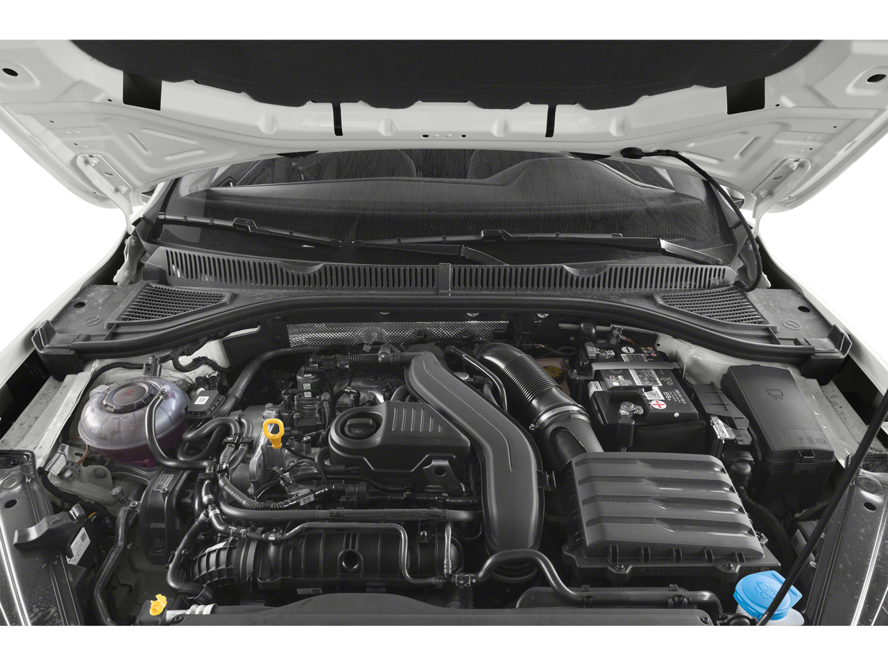 Below is all the standard equipment Volkswagen Certified Pre-Owned Certified, Black Cloth, 4 Speakers, 4-Wheel Disc Brakes, ABS brakes, Air Conditioning, Alloy wheels, AM/FM radio, Brake assist, Bumpers: body-color, Cloth Seat Trim, Delay-off headlights, Driver door bin, Driver vanity mirror, Dual front impact airbags, Dual front side impact airbags, Electronic Stability Control, Emergency communication system: Car-Net, Exterior Parking Camera Rear, First Aid Kit, Front anti-roll bar, Front Bucket Seats, Front Center Armrest, Front wheel independent suspension, Fully automatic headlights, Heated door mirrors, Heavy Duty Trunk Liner w/VW CarGo Blocks, Illuminated entry, Low tire pressure warning, Monster Mats w/Logo Rubber Mats Kit (Set of 4), Occupant sensing airbag, Outside temperature display, Overhead airbag, Overhead console, Panic alarm, Passenger door bin, Passenger vanity mirror, Power door mirrors, Power steering, Power windows, Radio data system, Radio: MIB3 Composition Color w/6.5 Touchscreen, Rear anti-roll bar, Rear reading lights, Rear window defroster, Remote keyless entry, Roadside Assistance Kit, Speed control, Speed-sensing steering, Split folding rear seat, Steering wheel mounted audio controls, Tachometer, Telescoping steering wheel, Tilt steering wheel, Traction control, Trip computer, Variably intermittent wipers, and Wheels: 16 2-Tone Machined Alloy.
