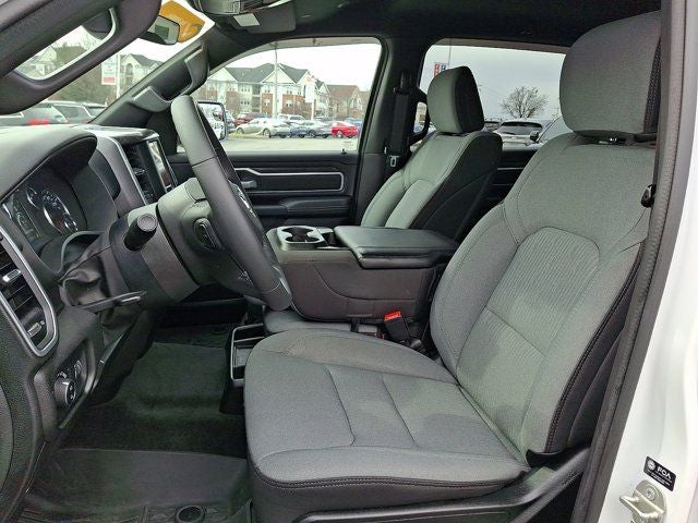 Below is all the standard equipment Bed Utility Group (MOPAR 4 Adjustable Cargo Tie-Down Hooks, MOPAR Deployable Bed Step, MOPAR Spray In Bedliner, and Pick-Up Box Lighting), Big Horn Level 1 Equipment Group (2nd Row In Floor Storage Bins, 4G LTE Wi-Fi Hot Spot, 8.4 Touchscreen Display, Apple CarPlay, Auto-Dimming Exterior Driver Mirror, Auto-Dimming Rear-View Mirror, Black Exterior Mirrors, Black Premium Power Mirrors, Bluetooth® Handsfree Phone & Audio, Class IV Receiver Hitch, Connectivity - US/Canada, Convex Wide-Angle Exterior Mirror Insert, Electric Shift-On-Demand Transfer Case, Exterior Mirrors Courtesy Lamps, Exterior Mirrors w/Heating Element, Exterior Mirrors w/Supplemental Signals, For Details, Visit DriveUconnect.com, For More Info, Call 800-643-2112, Front Fog Lamps, Glove Box Lamp, Google Android Auto, GPS Antenna Input, Heated Front Seats, Heated Steering Wheel, Integrated Center Stack Radio, Passenger Sun Visor w/Illuminated Mirror, Power-Folding Mirrors, Radio: Uconnect 5 W w/8.4 Display, Rear Dome w/On/Off Switch Lamp, Rear Power Sliding Window, Rear Window Defroster, SiriusXM Satellite Radio, and USB Host Flip), Quick Order Package 27Z Big Horn (Big Horn Badge), Certified Pre-Owned Certified, 3 Rear Seat Head Restraints, 3.21 Rear Axle Ratio, 4 Way Front Headrests, 4-Wheel Disc Brakes, 48V Belt Starter Generator, 6 Speakers, ABS brakes, Active Noise Control System, Air Conditioning, Alloy wheels, AM/FM radio, Brake assist, Bumpers: chrome, Cloth Bench Seat, Compass, Delay-off headlights, Driver door bin, Dual front impact airbags, Dual front side impact airbags, Dual Rear Exhaust w/Bright Tips, Electronic Stability Control, Emergency communication system: SiriusXM Guardian, Front anti-roll bar, Front Center Armrest w/Storage, Front License Plate Bracket, Front reading lights, Front Seat Back Map Pockets, Front wheel independent suspension, Fully automatic headlights, Global Telematics Box Module (TBM), Heated door mirrors, Heavy-Duty Engine Cooling, HEMI Badge, Illuminated entry, Integrated Voice Command w/Bluetooth®, Leather steering wheel, Low tire pressure warning, MOPAR Front & Rear Rubber Floor Mats, Occupant sensing airbag, Outside temperature display, Overhead airbag, Overhead console, Panic alarm, ParkView Rear Back-Up Camera, Passenger door bin, Passenger vanity mirror, Power door mirrors, Power steering, Power windows, Radio data system, Radio: Uconnect 3 w/5 Display, RAM Grille Badge - Chrome, Rear 60/40 Folding Seat, Rear anti-roll bar, Rear seat center armrest, Rear step bumper, Rear Wheelhouse Liners, Remote keyless entry, Speed control, Split folding rear seat, Steering wheel mounted audio controls, Tachometer, Telescoping steering wheel, Tilt steering wheel, Traction control, Trailer Brake Control, Trip computer, Variably