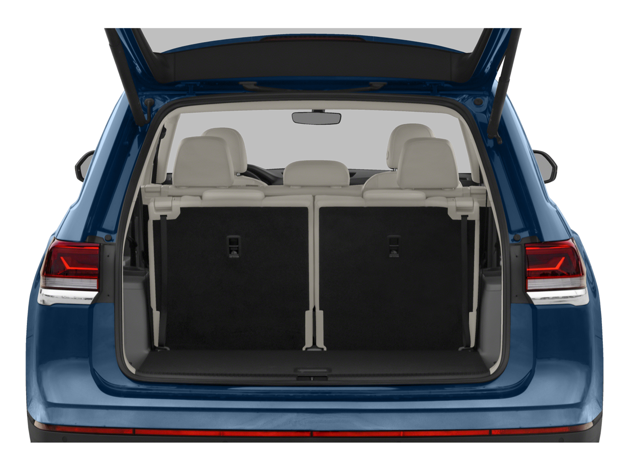 Below is all the standard equipment Panoramic Sunroof Package (Power Tilting & Sliding Panoramic Sunroof), Trailer Hitch Extras, 2nd-Row Dual Captain's Chairs, 3.60 Axle Ratio, 3rd row seats: split-bench, 4-Wheel Disc Brakes, 6 Speakers, ABS brakes, Air Conditioning, Alloy wheels, AM/FM radio: SiriusXM with 360L, Auto-Dimming Rear-View Mirror, Auto-dimming Rear-View mirror, Automatic temperature control, Brake assist, Bumpers: body-color, Compass, Delay-off headlights, Driver door bin, Driver vanity mirror, Dual front impact airbags, Dual front side impact airbags, Electronic Stability Control, Emergency communication system: VW Car-Net Safe & Secure 5-year, Exterior Parking Camera Rear, Four wheel independent suspension, Front anti-roll bar, Front Bucket Seats, Front Center Armrest, Front dual zone A/C, Front fog lights, Front reading lights, Fully automatic headlights, Heated Comfort Front Bucket Seats, Heated door mirrors, Heated front seats, Heavy Duty Trunk Liner w/VW CarGo Blocks, Illuminated entry, Leather Shift Knob, Low tire pressure warning, Occupant sensing airbag, Outside temperature display, Overhead airbag, Overhead console, Panic alarm, Passenger door bin, Passenger vanity mirror, Perforated V-Tex Leatherette Seating Surfaces, Power door mirrors, Power driver seat, Power Liftgate, Power steering, Power windows, Radio data system, Radio: MIB3 Composition Media w/8 Touchscreen, Rain sensing wipers, Rear air conditioning, Rear anti-roll bar, Rear reading lights, Rear seat center armrest, Rear window defroster, Rear window wiper, Remote keyless entry, Roadside Assistance Kit, Rubber Mats Kit - Captain's Chairs, Security system, Speed control, Speed-sensing steering, Split folding rear seat, Spoiler, Standard Suspension, Steering wheel mounted audio controls, Tachometer, Telescoping steering wheel, Tilt steering wheel, Traction control, Trip computer, Turn signal indicator mirrors, Variably intermittent wipers, VW Care, and Wheels: 20 x 8J 5-Spoke Silver Painted Alloy.
