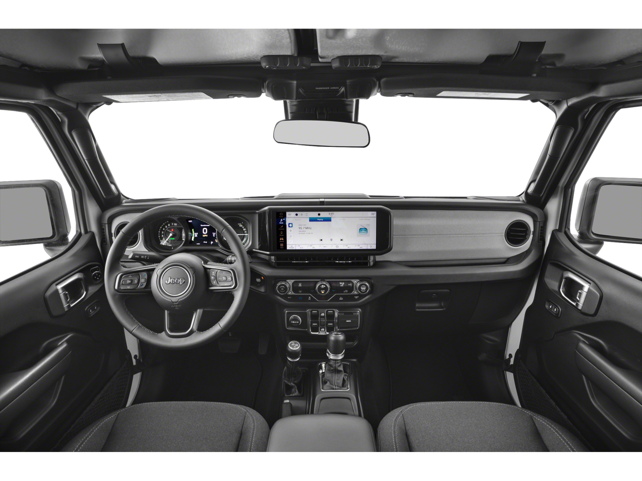 Below is all the standard equipment Convenience Group (2-Door Passive Entry, Front Door Locks, Emergency/Assistance Call, Heated Front Seats, Heated Steering Wheel, Remote Start System, and Universal Garage Door Opener), Quick Order Package 29W Willys (4.10 Rear Axle Ratio, 4xe 4-Wheel Drive Swing Gate Decal, 7 & 4 Pin Wiring Harness, 97 MPH Vehicle Max Speed Calibration, Auxiliary Switches, Black Grille, Conventional Differential Front Axle, E-Locker Rear Axle, Front LED Fog Lamps, LED Premium Reflector Headlamps, Molded in Color Rubicon Highline Flare, MOPAR All-Weather Floor Mats, Off-Road Plus Mode, Wheels: 17 x 7.5 Painted Black, Willy's Suspension, Willys, and Willys 4xe Hood Decal), Safety Group (Auto High Beam Headlamp Control, Blind Spot & Cross Path Detection, LED Taillamps, and ParkSense Rear Park Assist System), 2.0L I4 DOHC, Black 3-Piece Hard Top, Freedom Panel Storage Bag, No Soft Top, Rear Window Defroster, Rear Window Wiper/Washer, 4-Wheel Disc Brakes, 8 Speakers, ABS brakes, Air Conditioning, Alloy wheels, Apple CarPlay/Android Auto, Automatic temperature control, Brake assist, Cloth Low-Back Bucket Seats, Compass, Delay-off headlights, Driver door bin, Driver vanity mirror, Dual front impact airbags, Dual front side impact airbags, Electronic Stability Control, Front anti-roll bar, Front Bucket Seats, Front Center Armrest w/Storage, Front dual zone A/C, Front fog lights, Front License Plate Bracket, Front reading lights, Fully automatic headlights, Heated door mirrors, Illuminated entry, Integrated roll-over protection, Low tire pressure warning, Occupant sensing airbag, Outside temperature display, Overhead airbag, Panic alarm, ParkView Rear Back-Up Camera, Passenger door bin, Passenger vanity mirror, Power door mirrors, Power steering, Power windows, Radio data system, Radio: Uconnect 5 w/12.3 Display, Rear anti-roll bar, Rear reading lights, Remote keyless entry, Security system, Speed control, Split folding rear seat, Sport Suspension, Steering wheel mounted audio controls, Tachometer, Telescoping steering wheel, Tilt steering wheel, Traction control, Trip computer, Variably intermittent wipers, and Voltmeter.