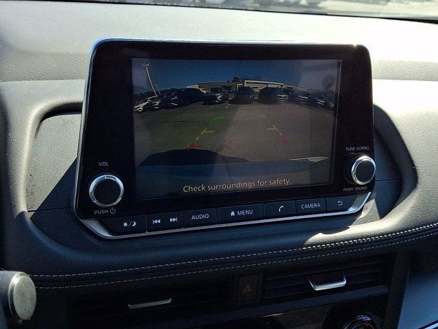 Below is all the standard equipment AWD, 4-Wheel Disc Brakes, 5.676 Axle Ratio, 6 Speakers, ABS brakes, Air Conditioning, Alloy wheels, AM/FM radio: SiriusXM, Auto High-beam Headlights, Automatic temperature control, Black Splash Guards (Set of 4), Brake assist, Bumpers: body-color, Chrome Rear Bumper Protector, Cloth Seat Trim w/Patterned Inserts, Delay-off headlights, Driver door bin, Driver vanity mirror, Dual front impact airbags, Dual front side impact airbags, Electronic Stability Control, Emergency communication system: NissanConnect Services, First Aid Kit, Floor Mats w/1-Piece Cargo Area Protector, Four wheel independent suspension, Front anti-roll bar, Front Bucket Seats, Front Center Armrest, Front dual zone A/C, Front reading lights, Fully automatic headlights, Heated door mirrors, Illuminated entry, Knee airbag, Low tire pressure warning, NissanConnect featuring Apple CarPlay and Android Auto, Occupant sensing airbag, Outside temperature display, Overhead airbag, Overhead console, Panic alarm, Passenger door bin, Passenger vanity mirror, Power door mirrors, Power driver seat, Power Liftgate, Power steering, Power windows, Radio data system, Radio: AM/FM NissanConnect, Rear anti-roll bar, Rear Parking Sensors, Rear seat center armrest, Rear side impact airbag, Rear window defroster, Rear window wiper, Remote keyless entry, Speed control, Speed-Sensitive Wipers, Split folding rear seat, Spoiler, Steering wheel mounted audio controls, Tachometer, Telescoping steering wheel, Tilt steering wheel, Traction control, Trip computer, Variably intermittent wipers, and Wheels: 18 Dark Painted Machine Finished Alloy.