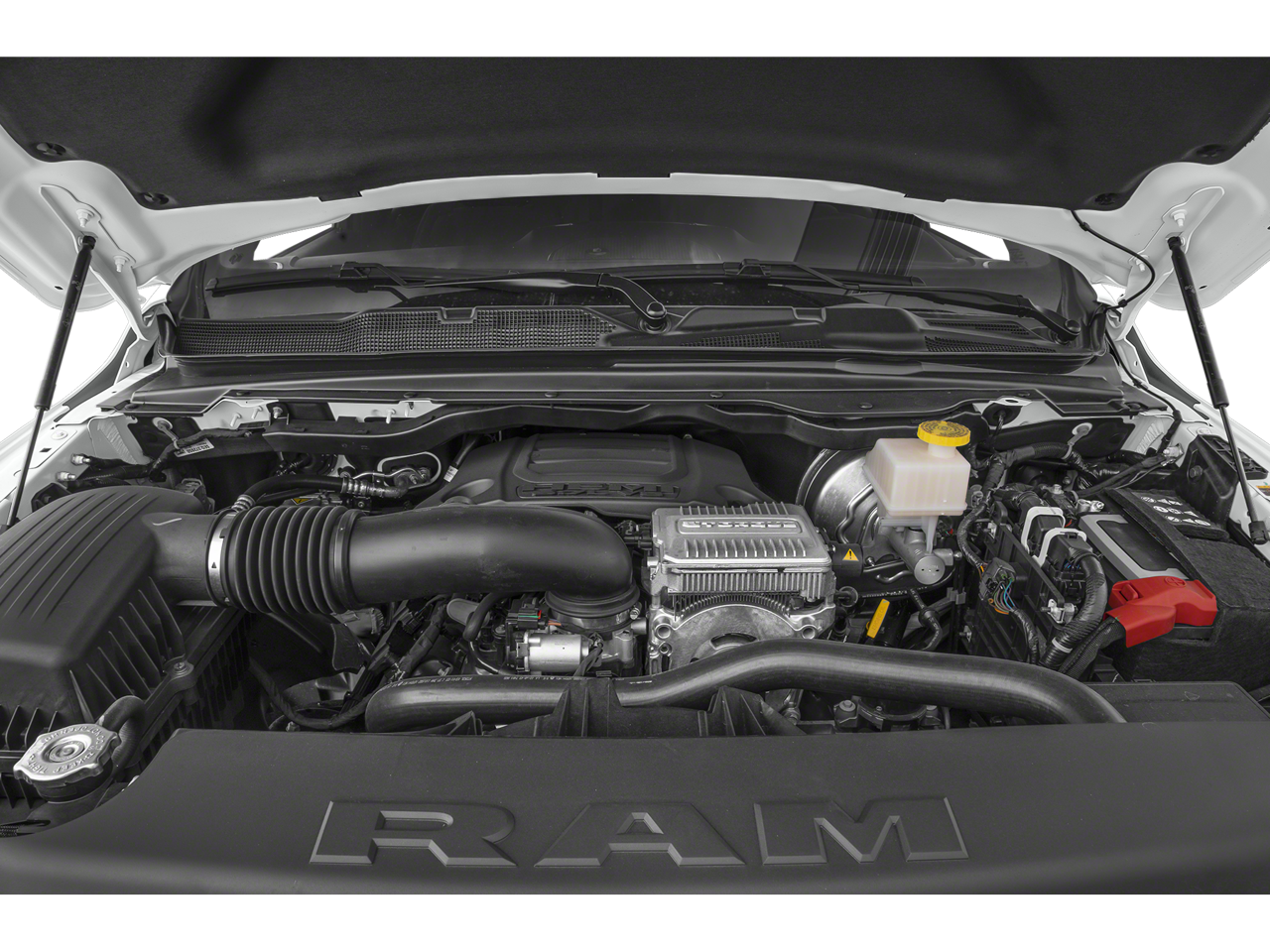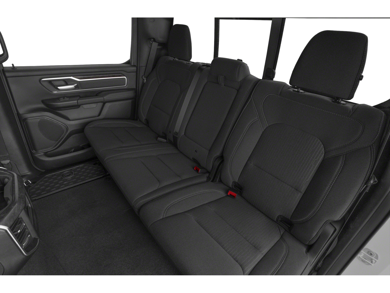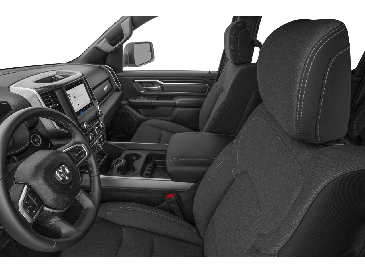 Below is all the standard equipment Big Horn Level B Equipment Group (115V Auxiliary Power Outlet, 2nd Row In Floor Storage Bins, 400W Inverter, 4G LTE Wi-Fi Hot Spot, 9 Amplified Speakers w/Subwoofer, Air Conditioning ATC w/Dual Zone Control, All R1 High Radios, All Radio Equipped Vehicles, Apple CarPlay, Auto-Dimming Exterior Driver Mirror, Auto-Dimming Rear-View Mirror, Black Premium Power Mirrors, Class IV Receiver Hitch, Cluster 7.0 TFT Color Display, Connected Travel & Traffic Services, Connectivity - US/Canada, Convex Wide-Angle Exterior Mirror Insert, Exterior Mirrors Courtesy Lamps, Exterior Mirrors w/Heating Element, Exterior Mirrors w/Supplemental Signals, For Details, Visit DriveUconnect.com, For More Info, Call 800-643-2112, Front Fog Lamps, Global Telematics Box Module (TBM), Glove Box Lamp, Google Android Auto, GPS Navigation, HD Radio, Heated Front Seats, Heated Steering Wheel, Integrated Voice Command w/Bluetooth®, LED Footwell Lighting, Media Hub w/2 Charge Only USBs, ParkSense Front/Rear Park Assist w/Stop, Power 2-Way Driver Lumbar Adjust, Power 8-Way Driver Seat, Power Adjustable Pedals, Power-Folding Mirrors, Radio: Uconnect 5 Nav w/12.0 Display, Rear Dome w/On/Off Switch Lamp, Rear Power Sliding Window, Rear Window Defroster, Remote Start System, Security Alarm, SiriusXM Radio Service, SiriusXM Satellite Radio, SiriusXM w/360L, Sun Visors w/Illuminated Vanity Mirrors, Universal Garage Door Opener, and USB Host Flip), Night Edition (3 Rear Seat Head Restraints, 4 Way Front Headrests, Accent Color Door Handles, Accent Color Premium Power Mirrors, Anti-Spin Differential Rear Axle, Black Exterior Truck Badging, Black Headlamp Bezels, Black Interior Accents, Black Painted Exterior Mirrors Caps, Body Color Front Bumper, Body Color Rear Bumper w/Step Pads, Bucket Seats, Deluxe Cloth Bucket Seats, Dual Exhaust w/Black Tips, Front Seat Back Map Pockets, Full Length Floor Console, Grille Surround 1 Black Texture 2 Black, Manual Adjust 4-Way Front Passenger Seat, RAM Grille Badge - Black, Rear 60/40 Folding Seat, Rear Center Armrest, and Wheels: 20 x 9.0 Premium Paint/Polished), Quick Order Package 23Z Big Horn (Big Horn Badge), 3.21 Rear Axle Ratio, 4-Wheel Disc Brakes, 48V Belt Starter Generator, 6 Speakers, ABS brakes, Air Conditioning, Alloy wheels, AM/FM radio, Blind Spot & Cross Path Detection, Brake assist, Bumpers: chrome, Cloth Bench Seat, Compass, Delay-off headlights, Driver door bin, Dual front impact airbags, Dual front side impact airbags, Electronic Stability Control, Emergency communication system: RAM Connect, Front anti-roll bar, Front Center Armrest w/Storage, Front reading lights, Front wheel independent suspension, Fully automatic headlights, Heated door mirrors, Illuminated entry, Leather steering wheel, LED Taillamps, Low tire pressure warning, Occupant sensing airbag, Outside temperature display, Overhead airbag, Overh