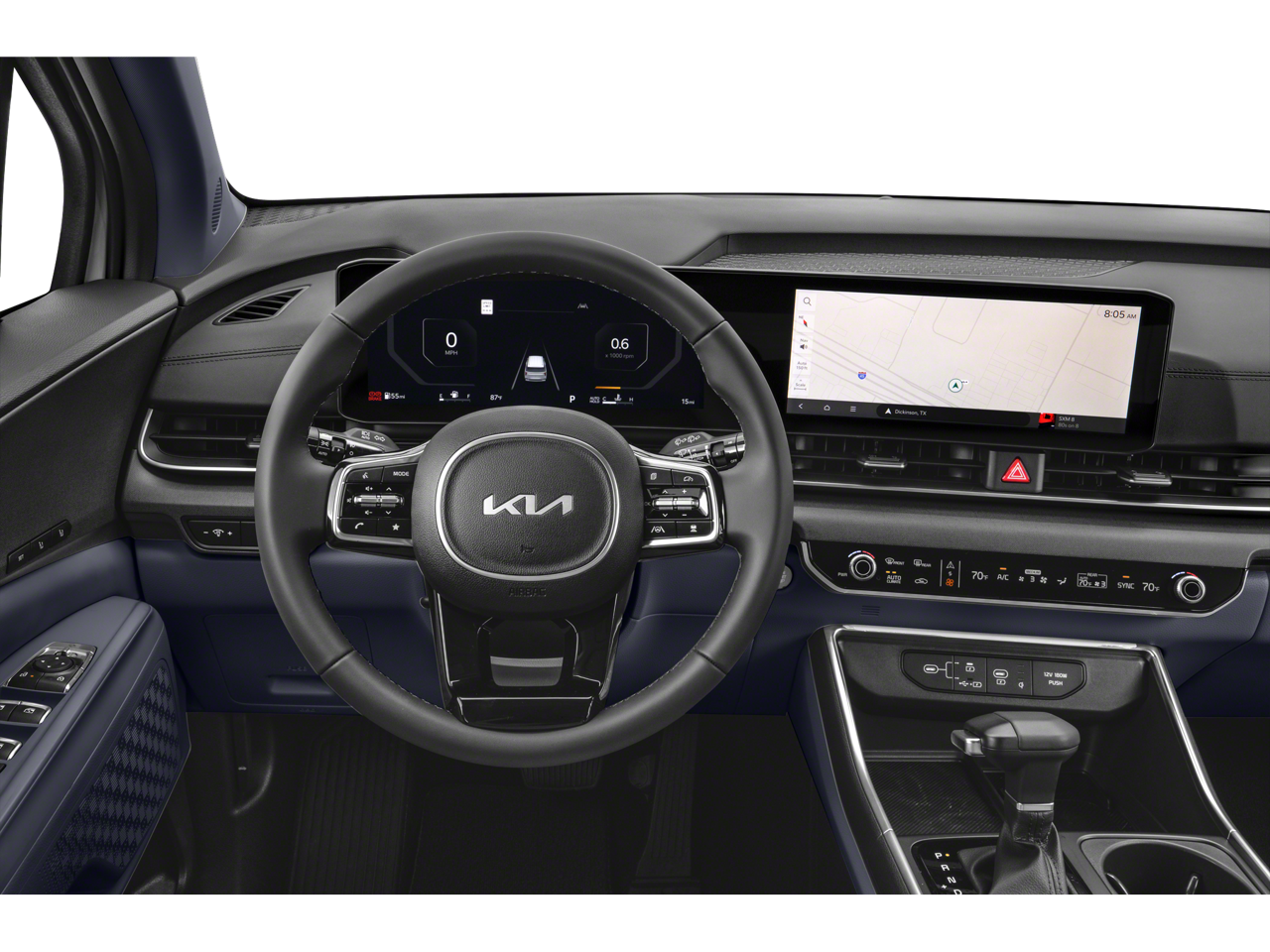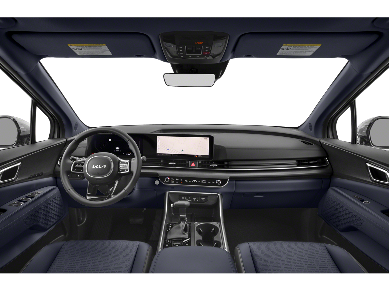 2025 Kia Carnival SX in Astra Blue with Tuscan Umber/Off-Black Artificial Leather.